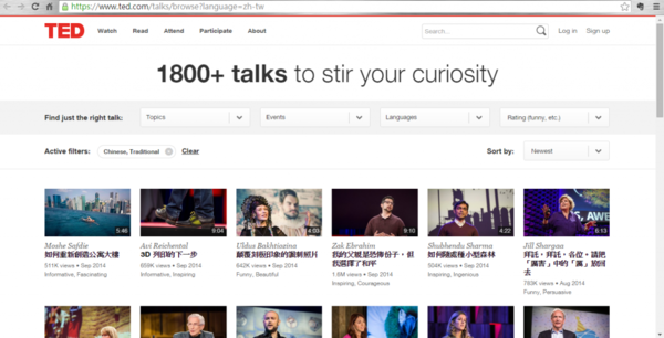 這個網站不用說,大家一定知道,匯集了各行各業傑出人士的演講,無論是科技、娛樂、運動、政治,所有稀奇古怪的演講題目這裡都有,每個影片也都有中英文逐字稿,廣受國內外好評的網站。