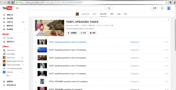 這是耶魯大學的開放式課程,其實國外的頂尖大學,像是MIT,都有做線上課程。聆聽大學的開放課程更可以模擬托福考試的聽力測驗喔。 二、說 小編認為這是四個大題當中最難的一部分,也是網路資源最少的部分,因為口說不是一時半刻練得起來,更無法用紙筆衡量,而且要自信的說英語真的要很大的勇氣阿!