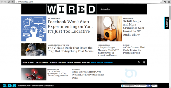 是的,就是在聽力測驗時我們推薦的網站"60 second science"的主網站"Scientific American"。這個網站比較偏科學類,藝術、文學方面的文章較少,如果對科學有興趣的可以多上來逛逛。 2. Wired