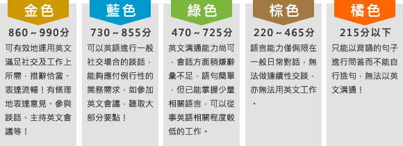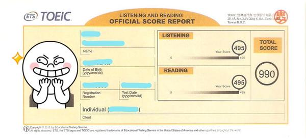 以下圖示為多益TOEIC分數代表的英文程度,嗯......只能說僅供參考!其實考多益TOEIC聽力、閱讀根本測不出英語口說程度的,我有另外補習英文會話,加上近期準備出國托福TOEFL考了116,其中口說成績是29分,才敢講自己英語口說還算不錯(準備托福TOEFL的分享文有空會再寫,也是在同一家補習班上課)。