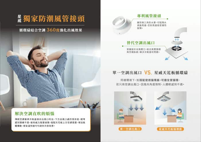 經過比價與詢問,終於鎖定台灣製造的「星威天花板循環扇」。這款循環扇採用嵌入式設計,完全不佔用地面或牆面空間,不會為動線造成任何阻礙。安裝完畢後,第一眼就能感受到它與輕鋼架天花板的完美融合,外觀簡潔又耐看,完全沒有其他立扇、壁扇那種突兀感。