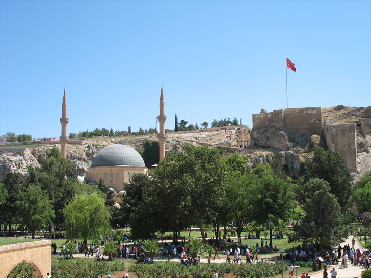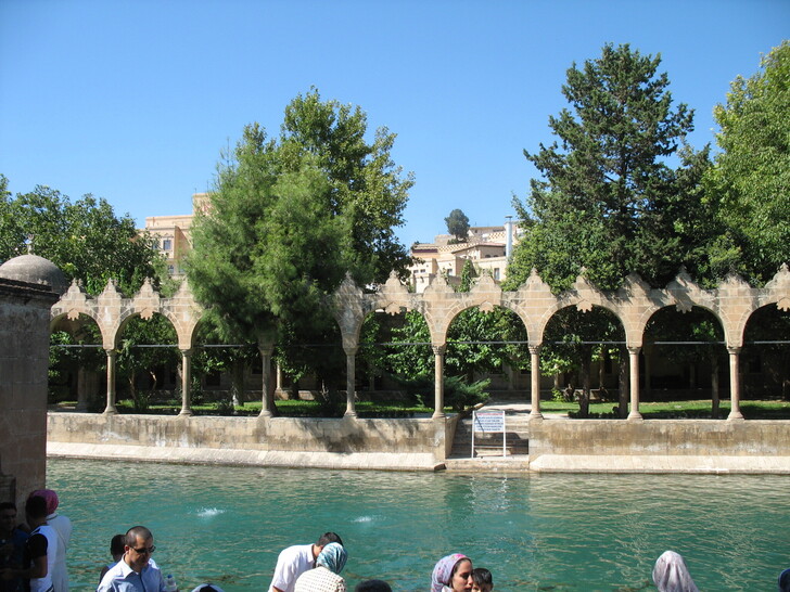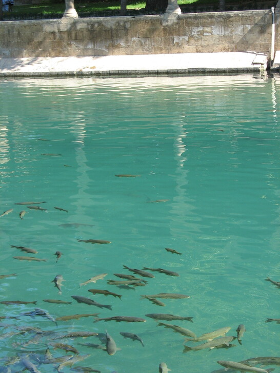 椰棗是中東地區重要農作物。。 土東聖城。夏露烏爾法。清真寺的護城河。水中有很多魚。但絕不能捕捉。據說⋯⋯會受懲中邪。