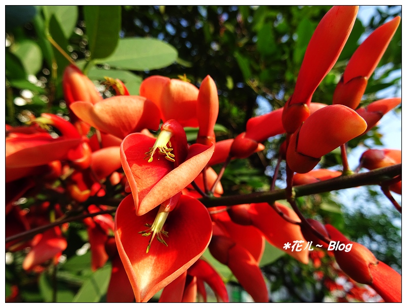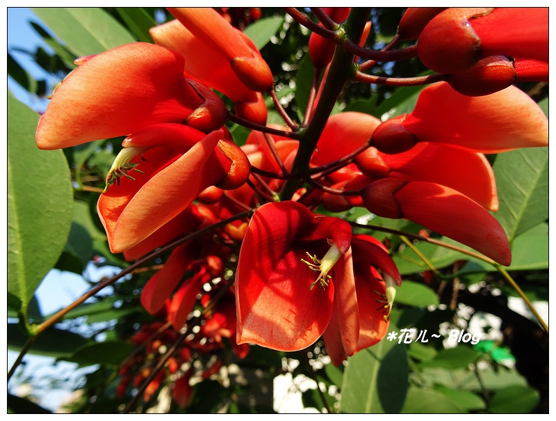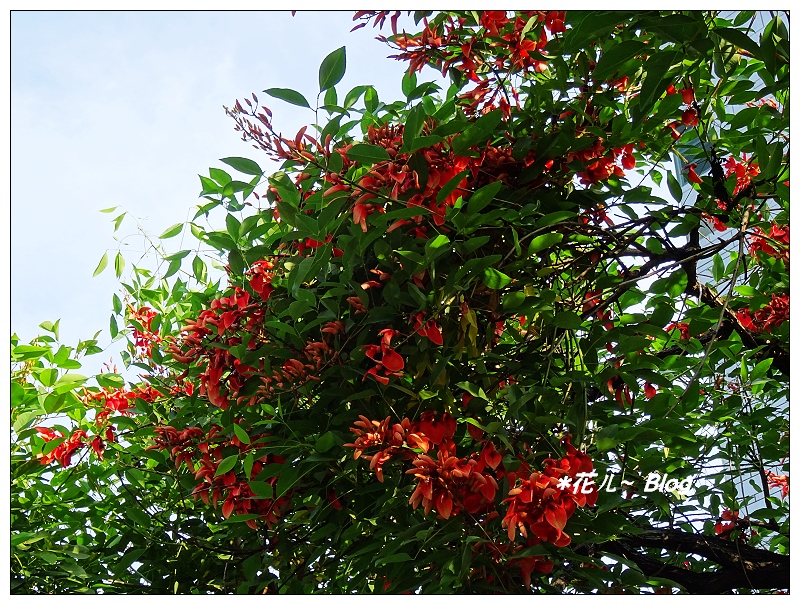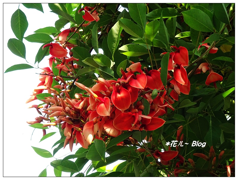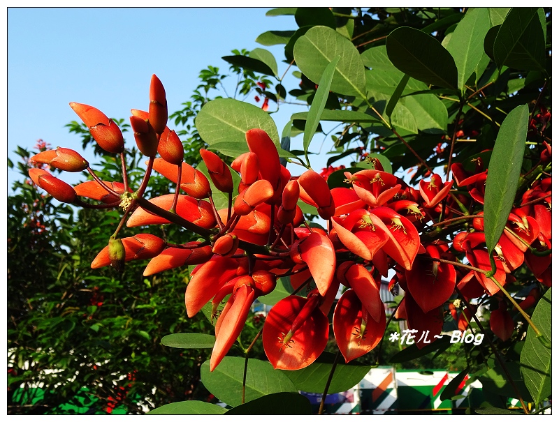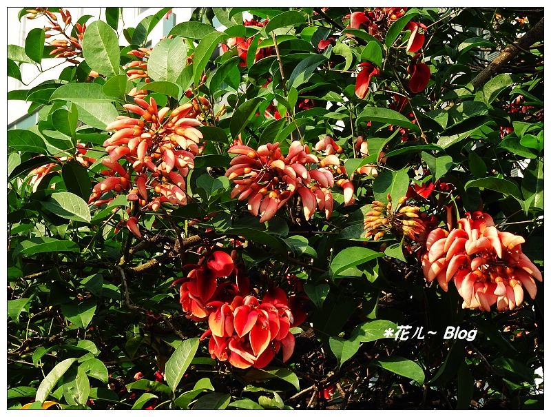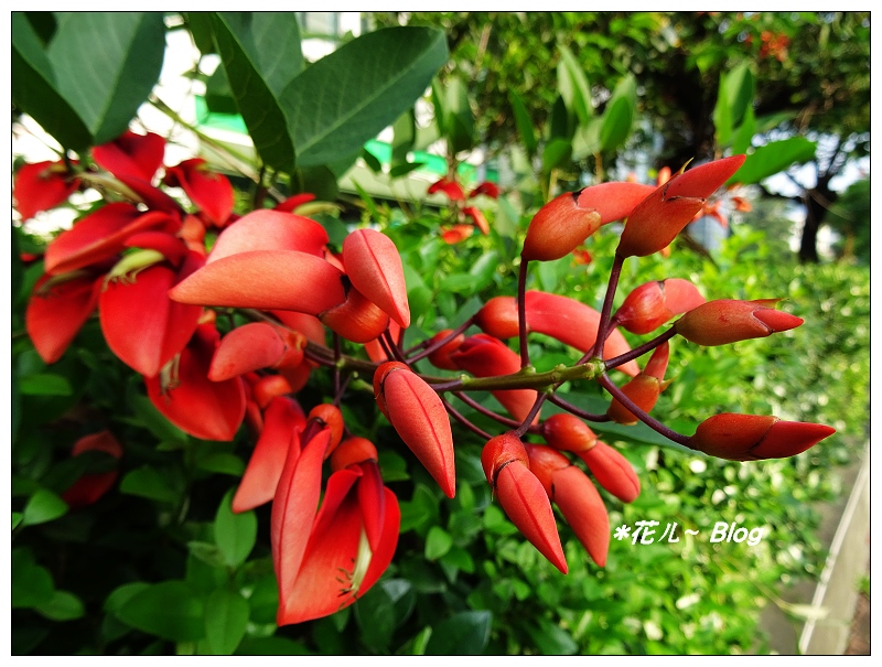五月裡「雞冠刺桐」花開美艷動人,火紅的花色總讓人佇足欣賞它艷麗的花姿。 其花語與精神給人衝勁與力量,踏實朝未來目標努力,掌握自己能力充分發揮。 當初夏花開南風吹拂的季節。讓人有股撫平對未知的恐懼,勇於面對自己方向。 位於台中向上路與惠中路旁郵局,腹地寬廣四周植滿女貞與雞冠刺桐點綴其中。 攝於:台中市向上郵局 「雞冠刺桐」又稱賽波樹Ceibo,因其花形像公雞的雞冠而得名。 俗名為海紅豆、冠刺桐、雞公花,是蝶形花科刺桐屬的小喬木。 原產地於南美洲,於台灣種植常作為行道樹美化景觀用途。 「雞冠刺桐」同為阿根廷和烏拉圭的國花,以及美國洛杉磯的市樹。 樹幹周徑可達50公分粗,植株高度約5-8公尺。 古人稱「桐」其意即為樹幹中空之樹。 常見紅花的刺桐、白花的油桐、紫花的泡桐、汁紅的血桐。 「雞冠刺桐」其根為直根,根上有由固氮細菌所形成的根瘤,固氮菌會固定空氣中的氮素, 供雞冠刺桐吸收使用,而雞冠刺桐則回報給這些細菌一些有機物質,二者形成共生的狀態。 「雞冠刺桐」於夏季開花,在南美洲的原生地區,花期為10月至次年的4月份。 而生長在北半球的雞冠刺桐,花期則是由4月至10月份。 花瓣裡甜甜的花蜜常引來「綠繡眼鳥」的光顧。 「雞冠刺桐」花紅色,花為五數花,完全花,左右對稱,花序為總狀花序。 花冠為蝶形花冠,有五片花瓣,分別稱為旗瓣、翼瓣與龍骨瓣。 旗瓣一片,位於花冠的最外面,是五片花瓣中最大片的一片。 「雞冠刺桐」其果實為莢果,長度只有數公分長。 種子栗棕色,圓柱狀,稀疏的分佈在果莢內,但有毒不可食。 除了雞冠刺桐外,還有原生的刺桐與黃脈刺桐、珊瑚刺桐等外來品種。 以下介紹它們的花與葉。 刺桐花 黃脈刺桐花 珊瑚刺桐花 台中向上郵局<台中70支> 地址: 台中市南屯區向上路2段199號 (04)2387-0215 週一至週五(郵務):08:00-18:00 台中向上郵局四周植滿女貞的圍籬,白色小花散發出濃郁的花香。 位置圖: