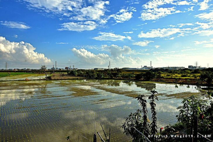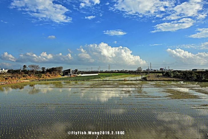 剛剛插秧的水田. 積層雲倒影 @ 仁德中洲 示範公墓木棉花