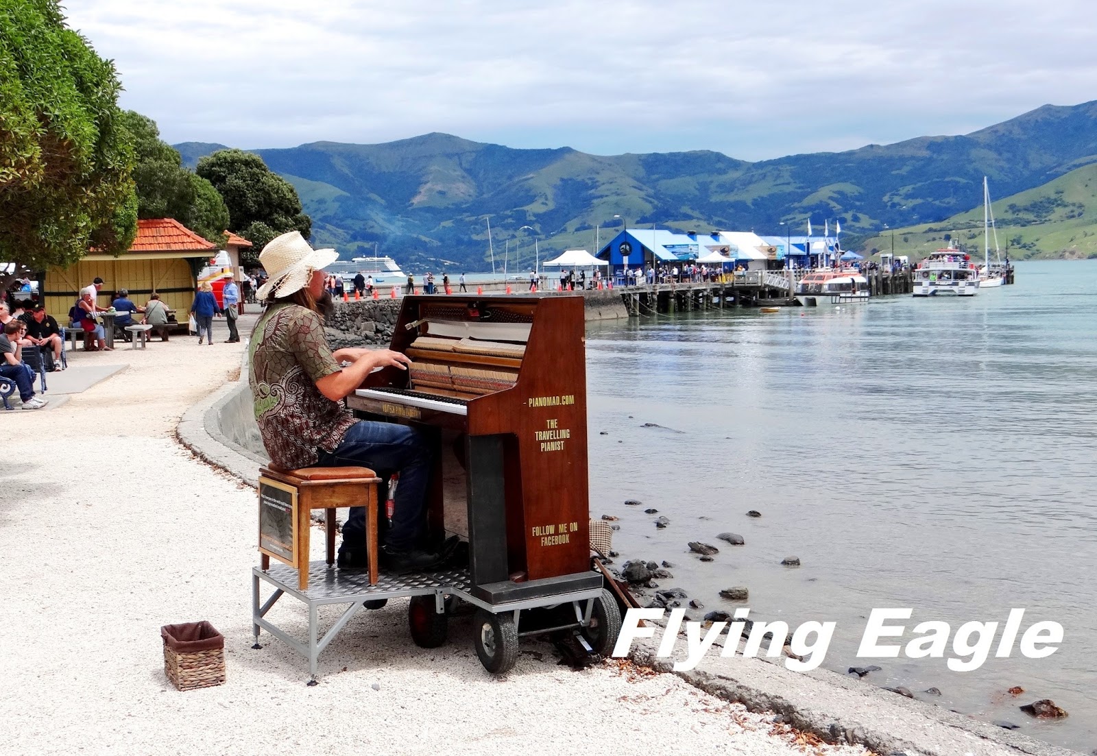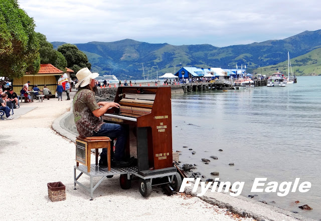 ▲碼頭邊自娛娛人的音樂人。 ▲阿卡羅阿戰爭紀念碑已有近百年歷史。