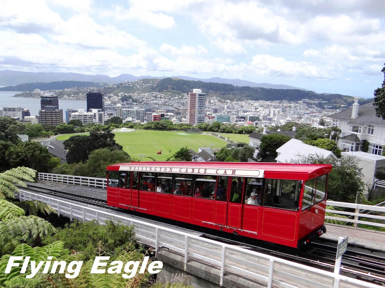 ▲紅色的纜車特別顯眼。 ▲從高處俯瞰威靈頓植物園。