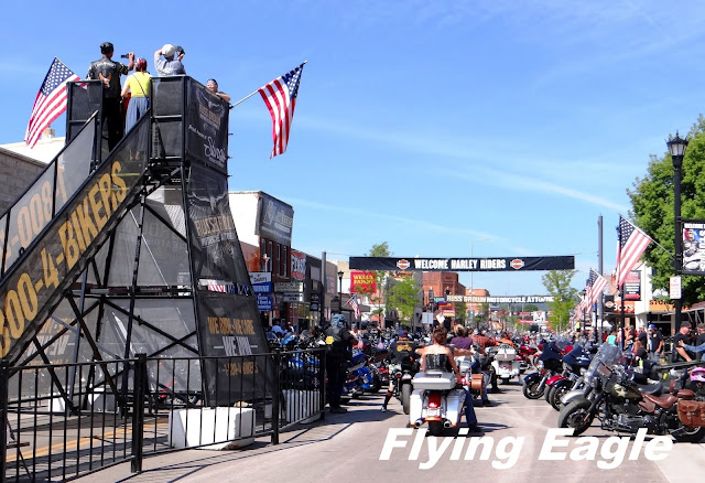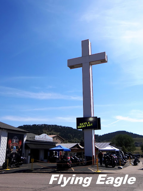 此次大西北區之旅,我們沿路碰到不少重型機車。一問之下才知道,原來一年一度的重機大會師,於八月初在史德吉斯舉行。世界各地的重機愛好者均齊集於此,參加的人數約有50萬,每年為南達科他州帶來八億美元的收入。於是我們便臨時在行程中加了史德吉斯,前往一探這全球重機界的盛事。 一進城,就看到這個城市自許為「騎士之都」(City of Riders)。有幾位男士站在城市標示牌旁,他們的衣服上繡有十字架。交談之後發現,他們是專門牧養重機騎士的牧師,我們主內一家,特別合照留念。上一次我們來到南達科他州,也碰到幾位向重機騎士傳福音的基督徒,其中一位還把他的熊皮披在我身上,是很難忘的經歷。 進城後,重型機車絡繹於途。遊客中心的牆上掛著之前活動的相片,與會人士把街道擠得水洩不通,盛況驚人。環顧四周,形形色色的重機讓人大開眼界,其中亦有顏色嬌柔粉嫩的,一改重機予人的粗獷印象。街上還有讓騎士沐浴的地方,同時亦可洗車,是我們沒想過的服務。重機大會師當然不只是摩托車威風凜凜地來去穿梭,還有重機展示秀、狂歡派對、賽車和音樂會等,主要的街道更是汽車止步,僅供行人和重機通行。 ▲史德吉斯自許為騎士之都。 ▲甫進城便見巨型的十字架。