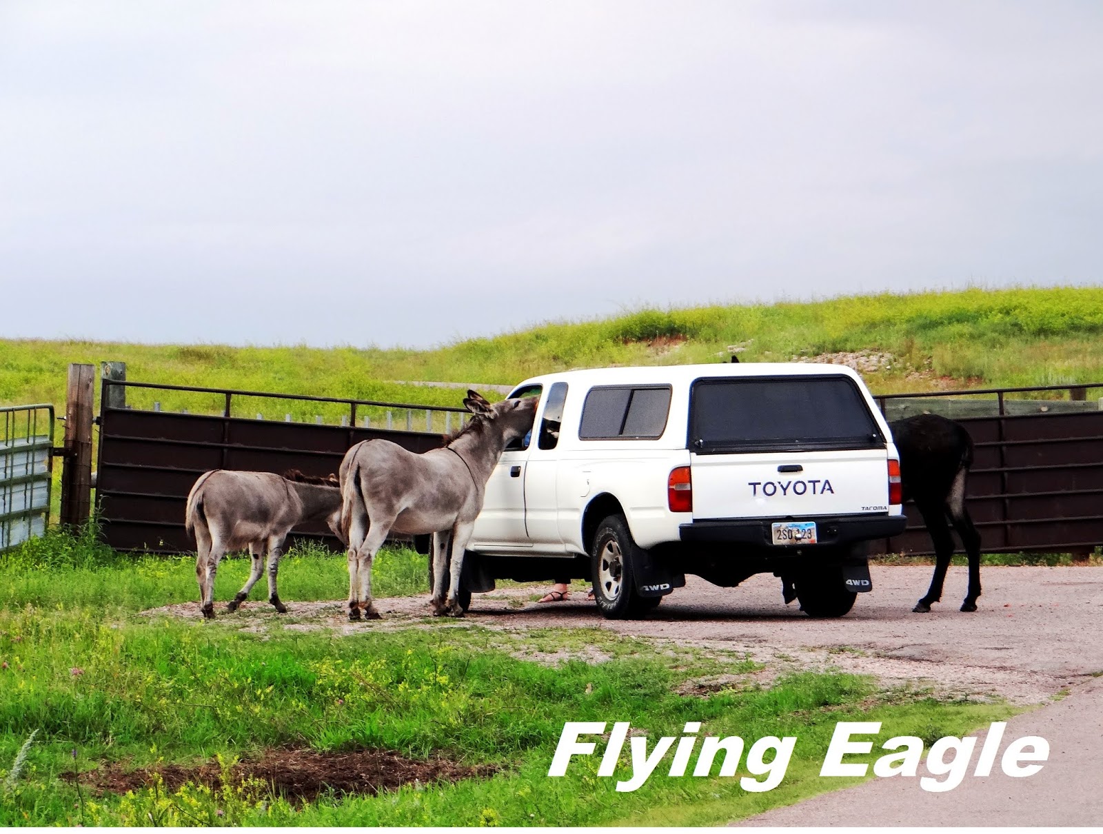 傍晚時分,我們特地去看野生動物。園內有1,500頭美洲野牛,所以這是最容易見到的大型動物。除了野牛,我們還看到不少其他動物,最有趣的大概就是驢子了。牠們數量不少,一點都不怕人。由於常被遊客餵食,所以只要車窗開著,驢兒就會探頭進車子,是公園的有趣的景致,而此種行徑也讓牠們得到乞討驢(Begging Burros)的稱號。