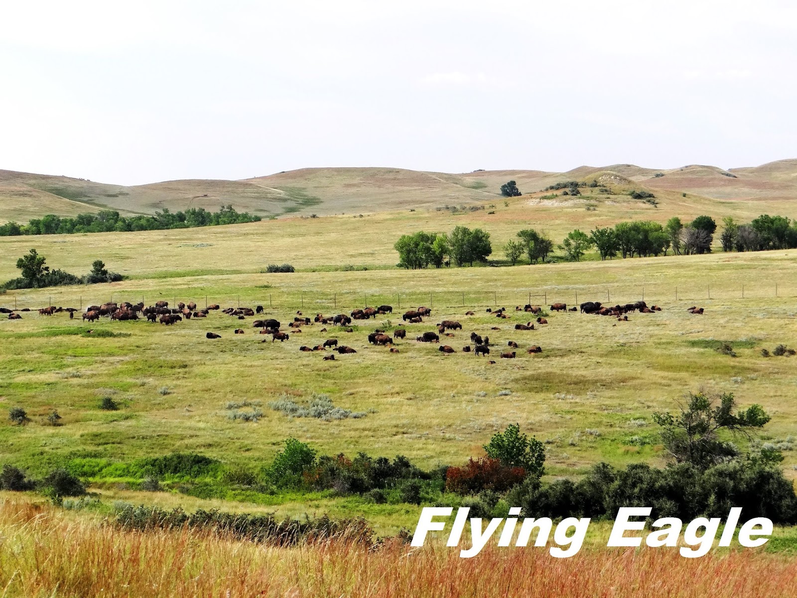 ▲大批美洲野牛安靜吃草。