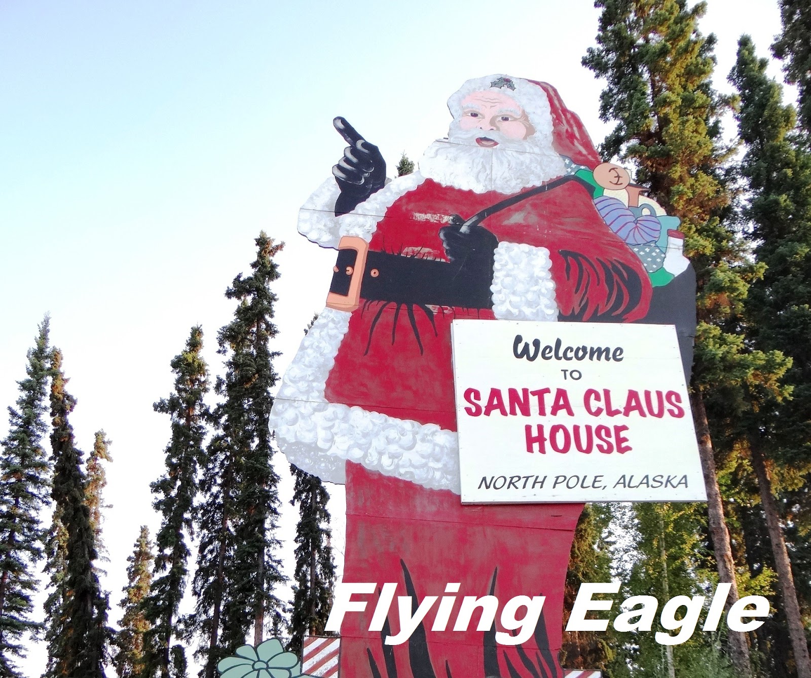 阿拉斯加有個有趣的小鎮叫做北極(North Pole),人口只有兩千多。鎮上有個出名的禮品店叫做「聖誕老人的家」(Stanta Claus House),店門口有個世界最大的玻璃纖維製的聖誕老人。傳說中聖誕老人居住在真正的北極,但是畢竟鮮少有人能夠到訪真正的北極,阿拉斯加的北極便聊慰大家的心。每年聖誕前,阿拉斯加北極的郵局都會收到數十萬封寄給聖誕老公公的信件,而許多人寄聖誕卡時也希望能蓋上這個小鎮的郵戳作為紀念。