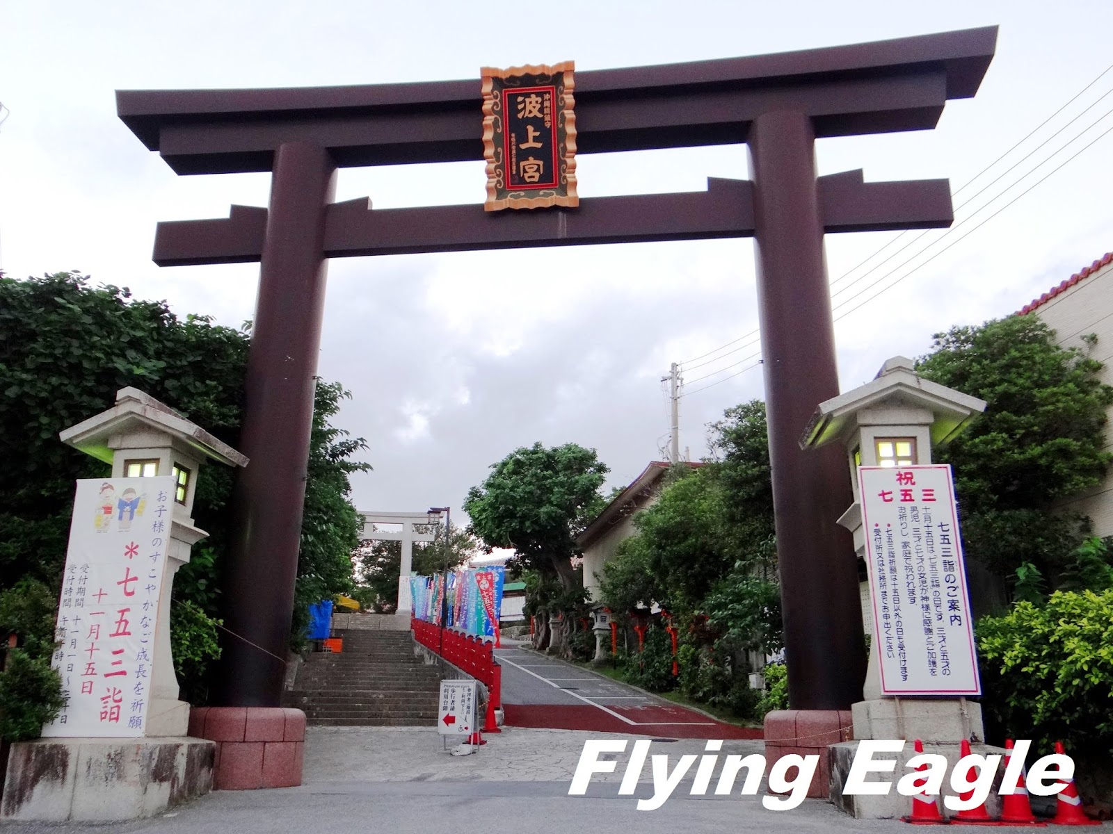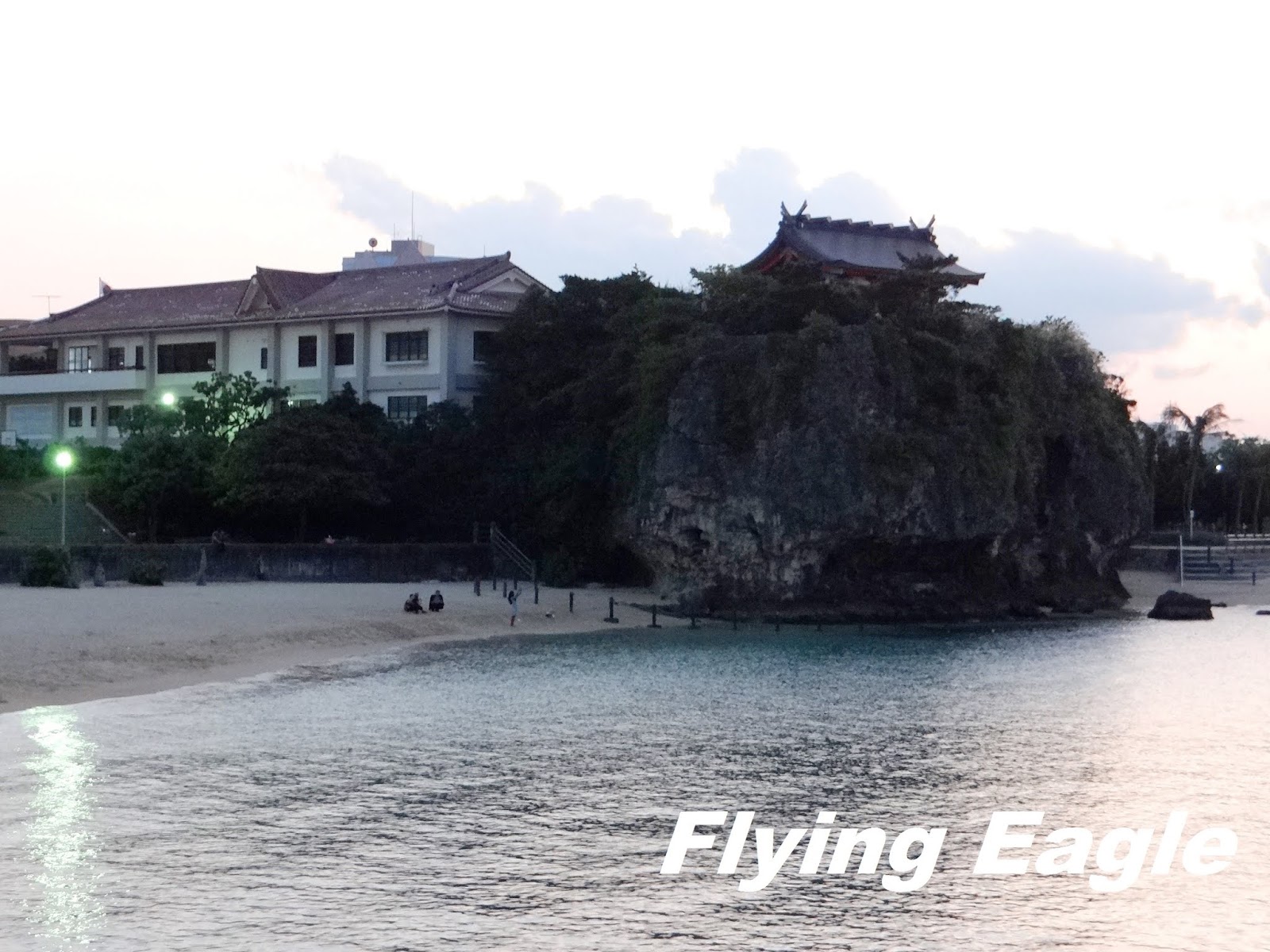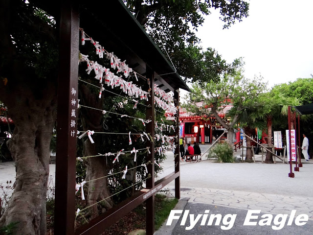 我們到達沖繩首日,在傍晚前找到入住的旅館,然後便逕赴波上宮。波上宮全日免費參觀,於琉球王朝即已存在,據說至少有七百年歷史。它在琉球八社之中地位最高,所以過往琉球國王新年時均會來此參拜。時至今日,參拜人數仍居沖繩第一,是熱門的景點。一進大鳥居便有階梯往上,再進另一個鳥居便看到色澤鮮艷的拜殿。拜殿看來毫不老舊,原來那霸市歷經二次大戰,幾乎被夷為平地。波上宮僅餘鳥居屹立,其他部分均為後來重建。黃昏時分,殿門已經關閉,遊客亦頗稀疏。拜殿前方有個架子,讓人把籤繫在上面。日本人抽到下籤時不願把噩運帶回家,往往把籤文綁在樹上。波上宮特別準備了一個架子,發揮了樹的作用。 波上宮位於海邊的斷崖上,看到海才明白神社的名字從何而來,而這波之上海灘也是那霸市唯一的海灘。海灘前方有橋樑遮蔽視野,頗煞風景,但不失為散步吹風的好去處。