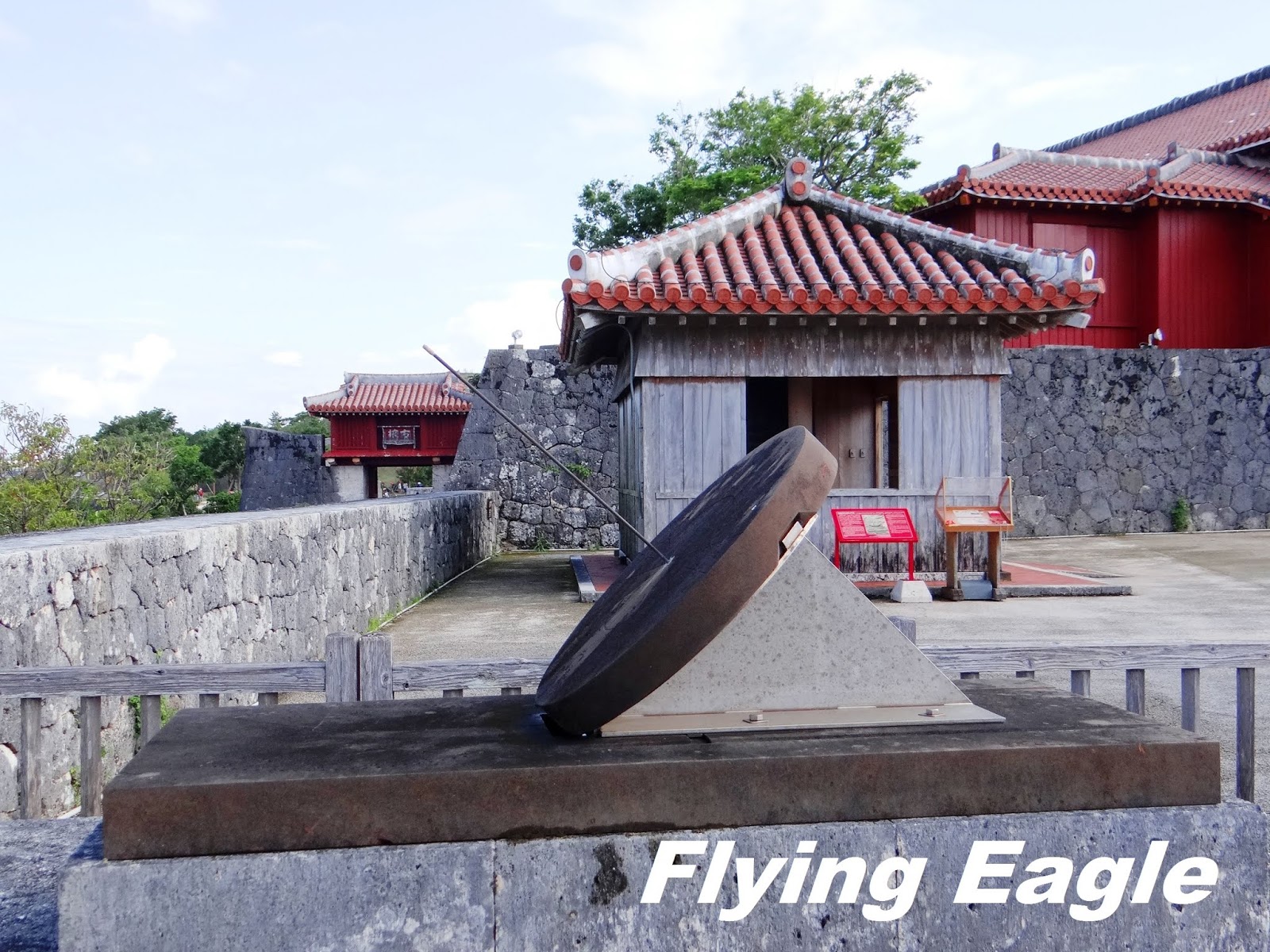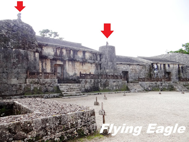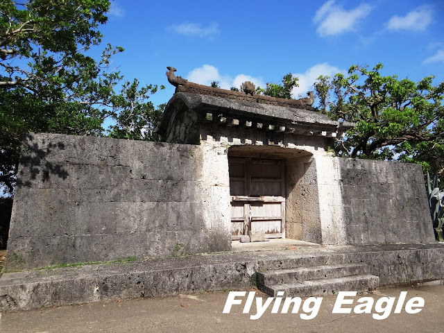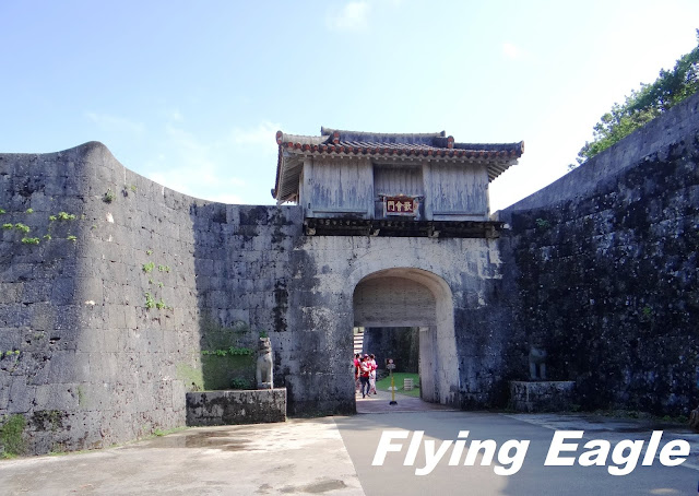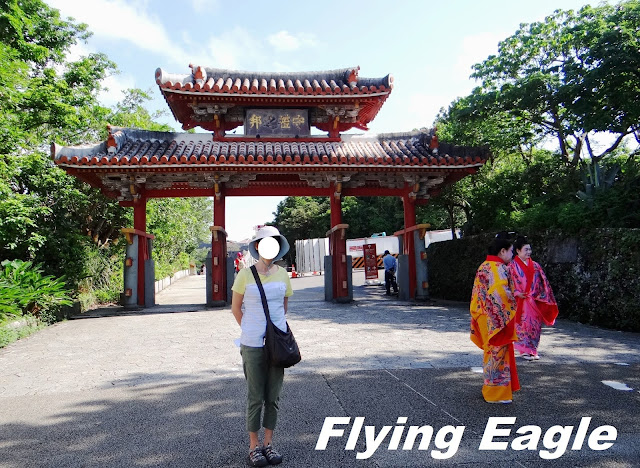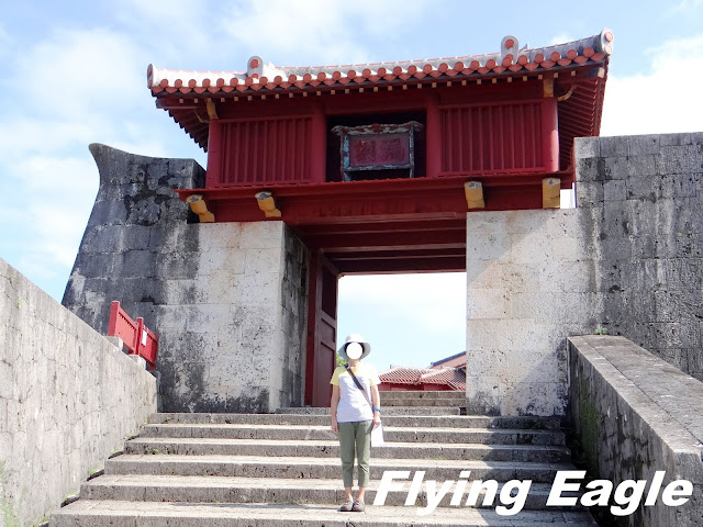 到訪時間:Nov. 2018 這天一早我們前去租車公司,路上竟然看到以廣東話口語寫的一行字,意即生存就是為了吃。原來是一家中餐館,用別出心裁的手法招徠顧客。 我們自駕遊的第一站是首里城,這座紅色的世界遺產代表琉球王國的光輝歷史。首里城建於13-14世紀,15-19世紀間是琉球國都城和王宮的所在地。到了首里城,首先見到的是守禮門,門上題有「守禮之邦」,取自明神宗冊封琉球國王詔書中的詞句。在守禮門前碰到兩位女士臉上抹著厚粉,慎而重之地穿上鮮艷的傳統服飾。進門後就看見園比屋武御嶽,御嶽即古時琉球人祈願的場所。園比屋武御嶽建於16世紀,是當時琉球國王出巡時祈求路途平安的地方。仔細端詳御嶽的石門,石灰岩的建築中間是木製門。屋頂兩側有翹起的魚尾,魚身的鱗片清晰可見。御嶽石門在2000年被聯合國教科文組織列為世界遺產。 進首里城要經過一重又一重的門,下一道是歡會門,由此進入首里城的外郭。當年為了歡迎中國使節,城門便以歡會命名。石造的城門上有木製的瞭望台,門的兩側還有石獅坐鎮,據說可以驅魔。再下一道是漏刻門,漏刻即水鐘,漏刻門上的塔樓裡有水槽,依其滴漏的水量來計時。報時人擊鼓報時,而瞭望台則接著敲擊大鐘向全城報時。進了漏刻門就看到日影台,從前的琉球人按日影的軌跡來計算時間。一直以為琉球人過著較悠哉的生活,沒想到他們對時間如此重視!奉神門是首里城公園的入口,也是付費區。區內有更多琉球的古物,不過我們因另有行程,就此止步。不料在我們到訪後一年,首里城慘遭祝融,破壞程度嚴重,不知何年何月才能修復,讓人不勝唏噓。