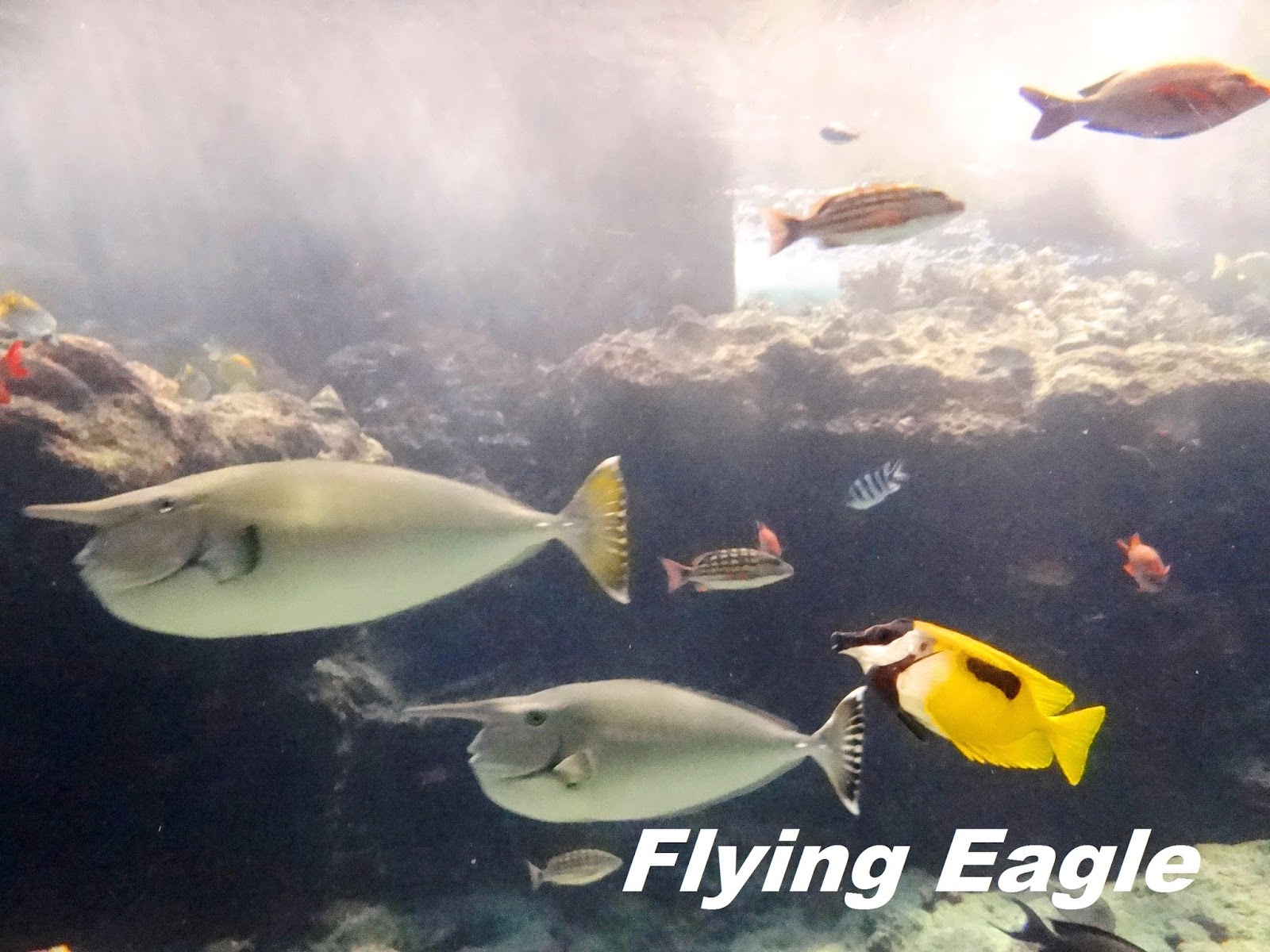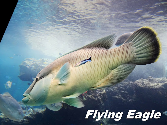 餵食表演後,我們順著廊道繼續參觀其餘的展示,也有不少有趣的觀察。上帝的創造實在奇妙,誰會想到海裡的魚竟長得像天上的飛鳥?有的魚凸眼大嘴,來勢洶洶。有的長著長長的鼻子,儼然海底版的皮諾丘,我們也在讚嘆中結束了水底世界的奇幻漫遊。 ▲來勢洶洶。