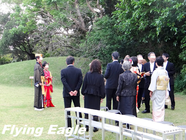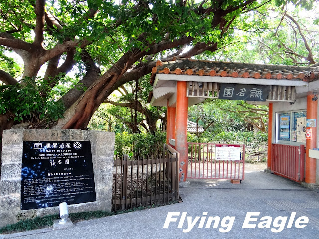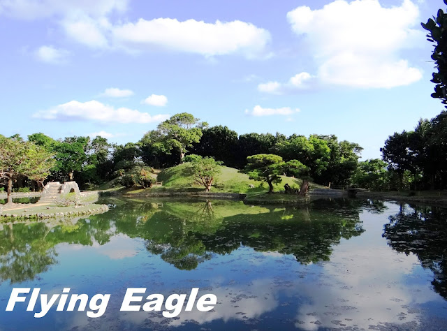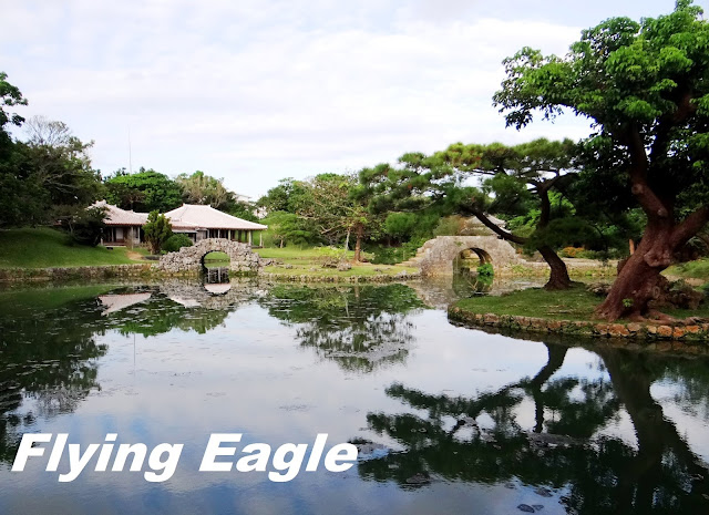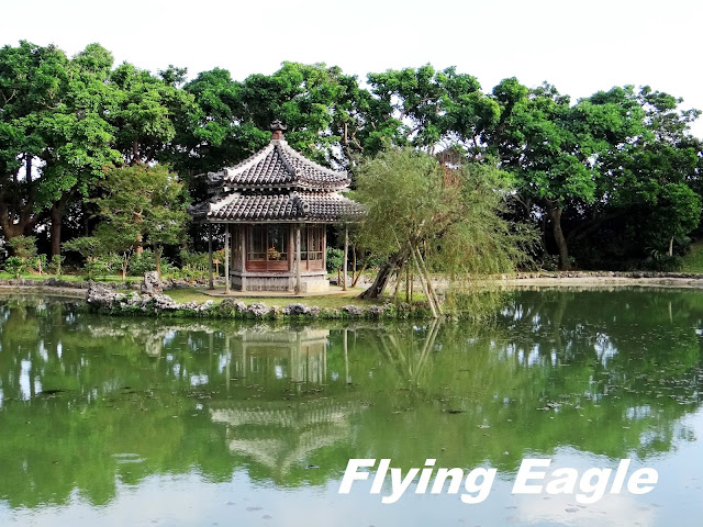 識名園位於首里城之南,故又稱南苑。它是琉球王室休閒的處所,也用以招待外國使臣。這也是我們此行最後一個世界遺產的景點。園內花木扶疏,藍天白雲和樹木倒映在平靜無波的池塘中,賞心悅目。我們剛好碰上一場婚禮,新人遵照琉球傳統打扮,親友則多穿西方服飾。從告示牌得知,這種婚禮叫做「王朝式」,倒是保留傳統文化的好方法。御殿共有15個房間,需脫鞋參觀。 建築雖已斑駁,仍保存良好,房間的擺設和用品訴說著昔日王室的生活。 庭園採迴游式設計,小徑繞著池塘而行,漫步其中,可從不同角度欣賞園景。池畔的六角堂為中國式建築,古典優雅,堂邊的拱形石橋由一塊當地的石灰岩打鑿而成。幾隻白色的水鳥伸長脖子在草地上踱步,成了園中可愛的點綴。