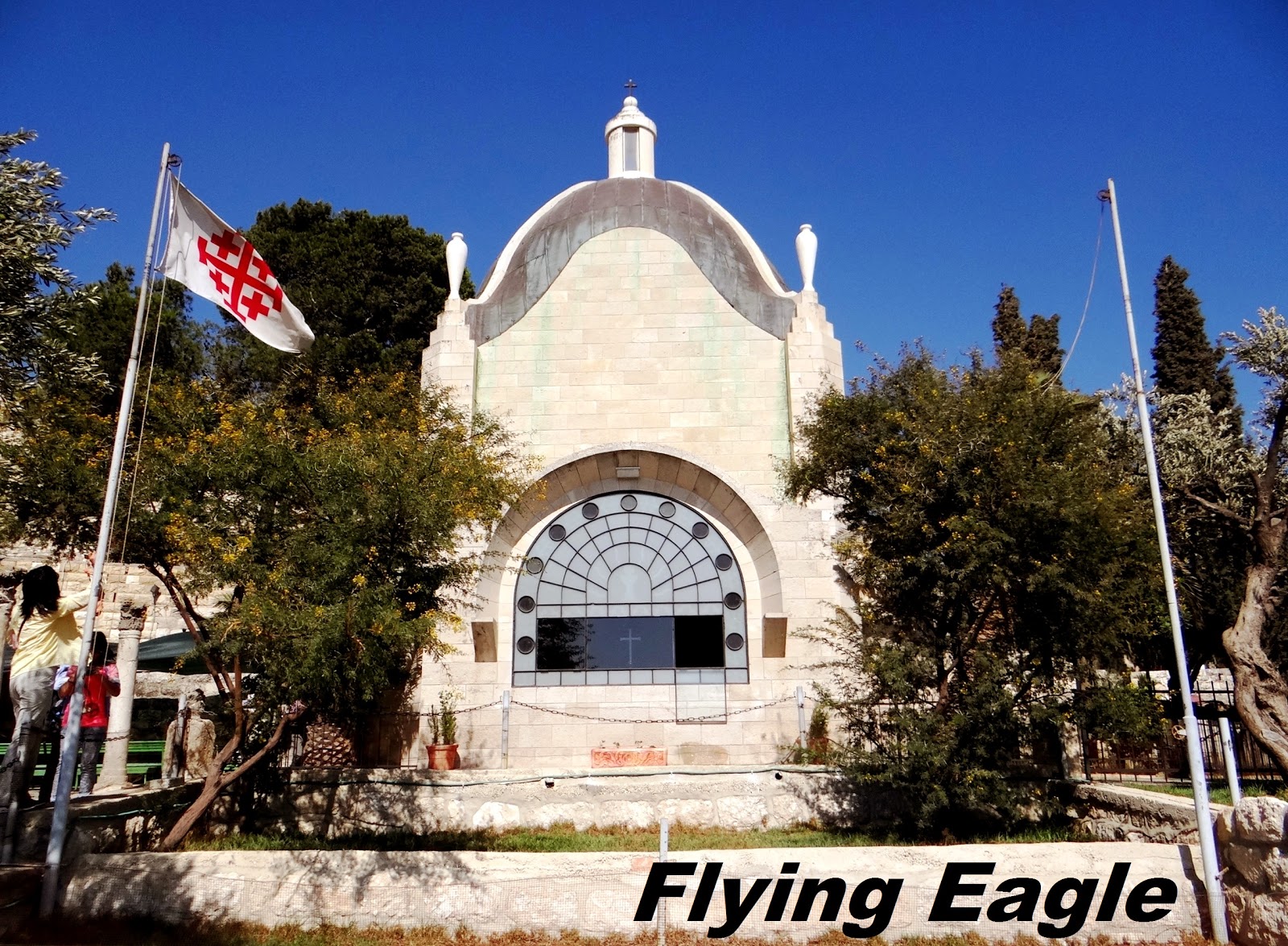 教堂裡的佈置很簡單素雅,祭壇後面是一扇美美的窗子,向外望可以看到耶路撒冷城,聖殿山上大磐寺的屋頂遠遠仍閃著金光。