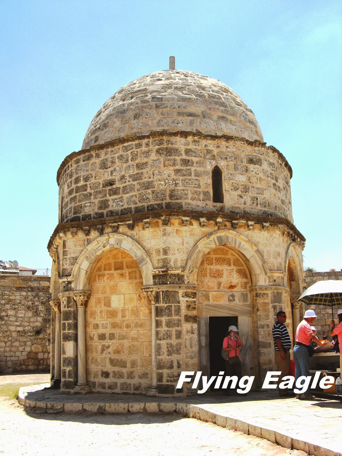 耶穌升天堂位於橄欖山頂,我們這次行程沒有去,但2008年曾經去過。許多人根據使徒行傳1:12的記載,相信耶穌升天的地方在橄欖山頂,於是乎在此建立了這教堂。這磚造的教堂很小,外形呈八角形。教堂裡有一個據說是耶穌升天時留下的右腳印。可惜因為教堂裡很陰暗,相片照得很朦朧。