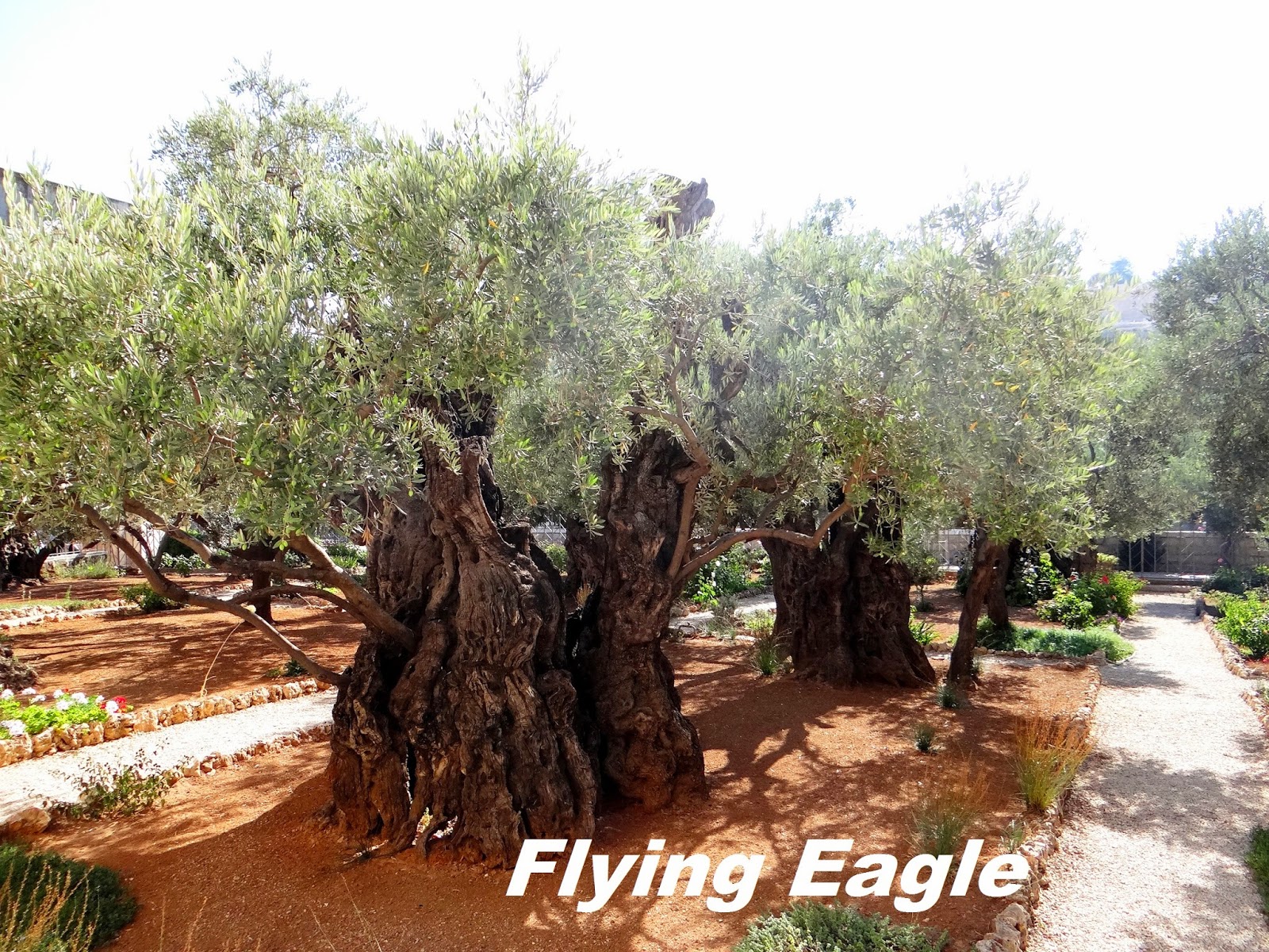 以色列雖然乾旱,但畢竟是流奶與蜜之地。在這炎炎夏日,除了老當益壯的橄欖樹之外,園子裡和附近還有一些色彩鮮艷的植物,生意盎然。