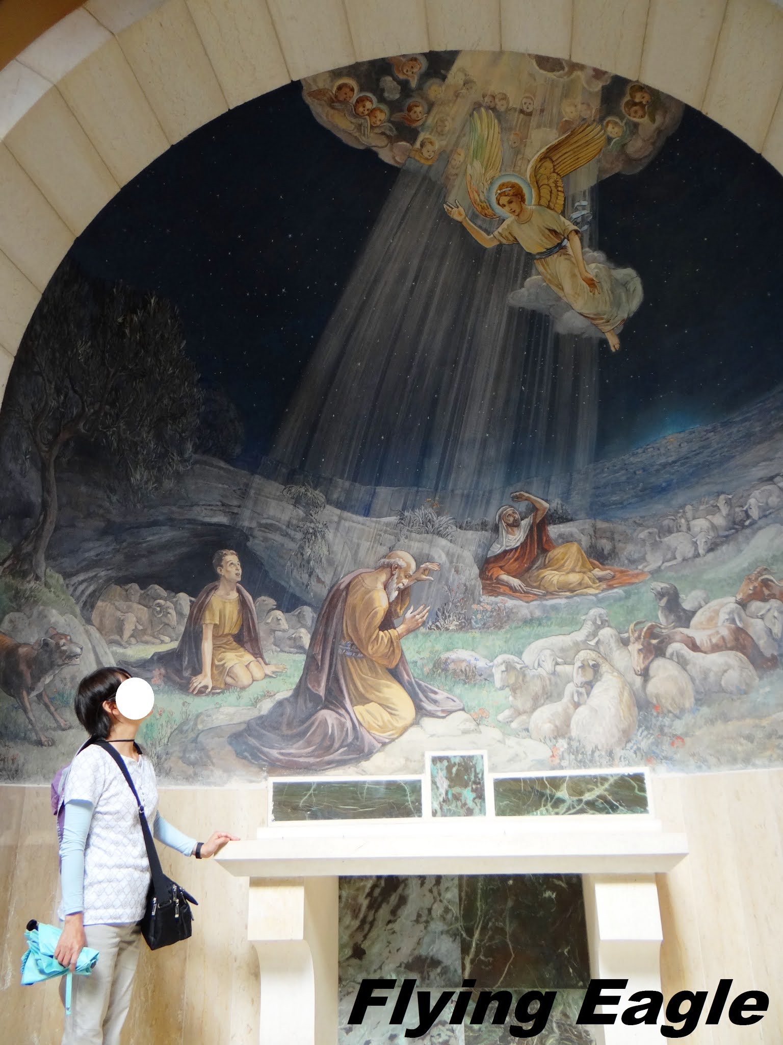主耶穌降生當晚,天使在牧羊人的野地(Shepherds’ Field)向牧羊人報喜訊(路加福音2:8-11)。景點入口有大紅字體的拉丁文寫著「榮耀歸於至高神」,繼續往前走有座天主教教堂,名為牧羊人的野地教堂(The Shepherds’ Field Chapel)。教堂內特別引人注目的是牆上的三幅壁畫,分別繪出天使向牧羊人報喜、牧羊人朝拜耶穌,以及牧羊人歡欣鼓舞地離開。畫面簡潔,但畫中人物的情感卻躍然而出。堂前廣場的噴水池最上端是牧羊人的雕像,下方則由羊嘴作出水口,造型很切合場景。