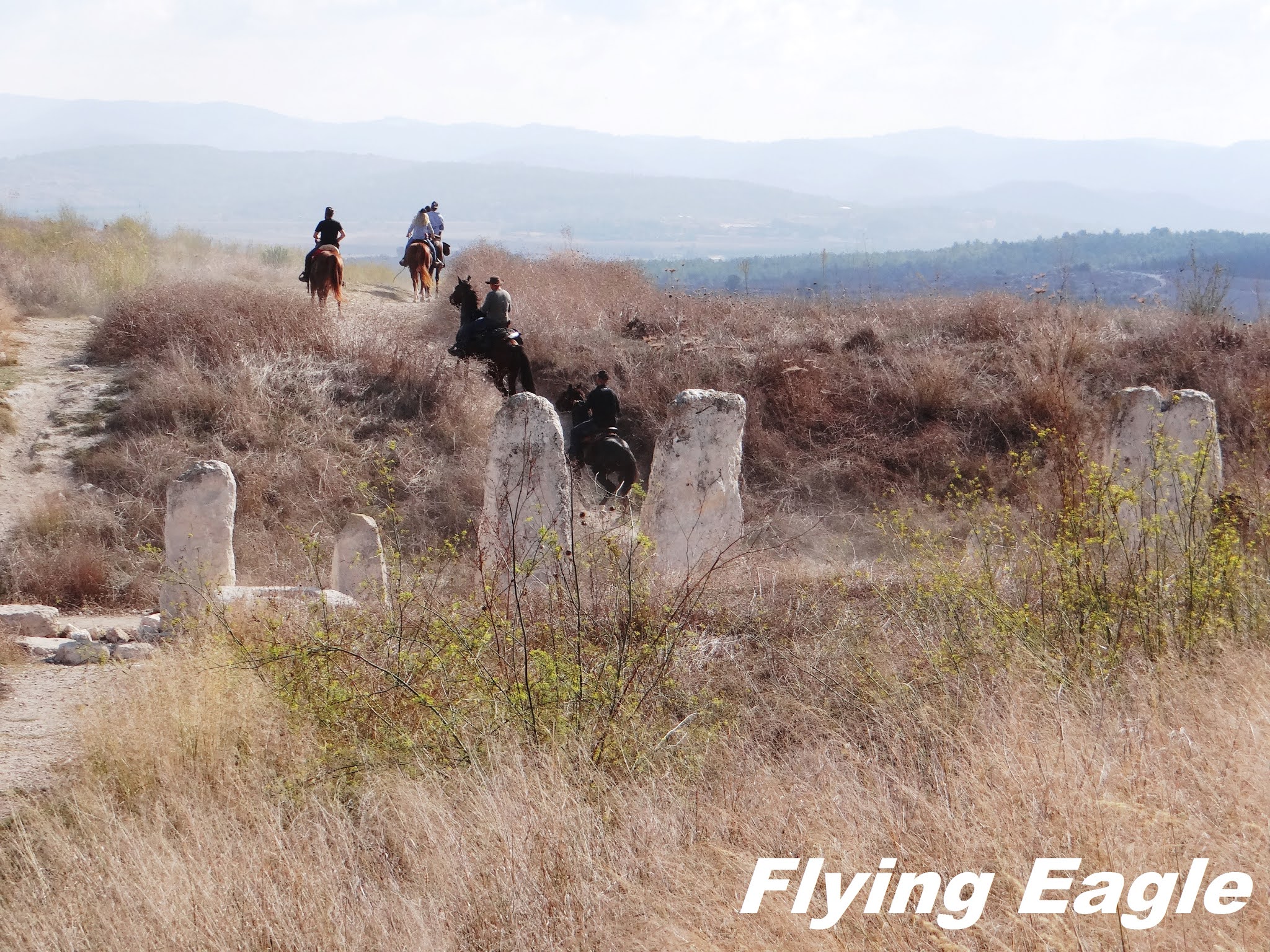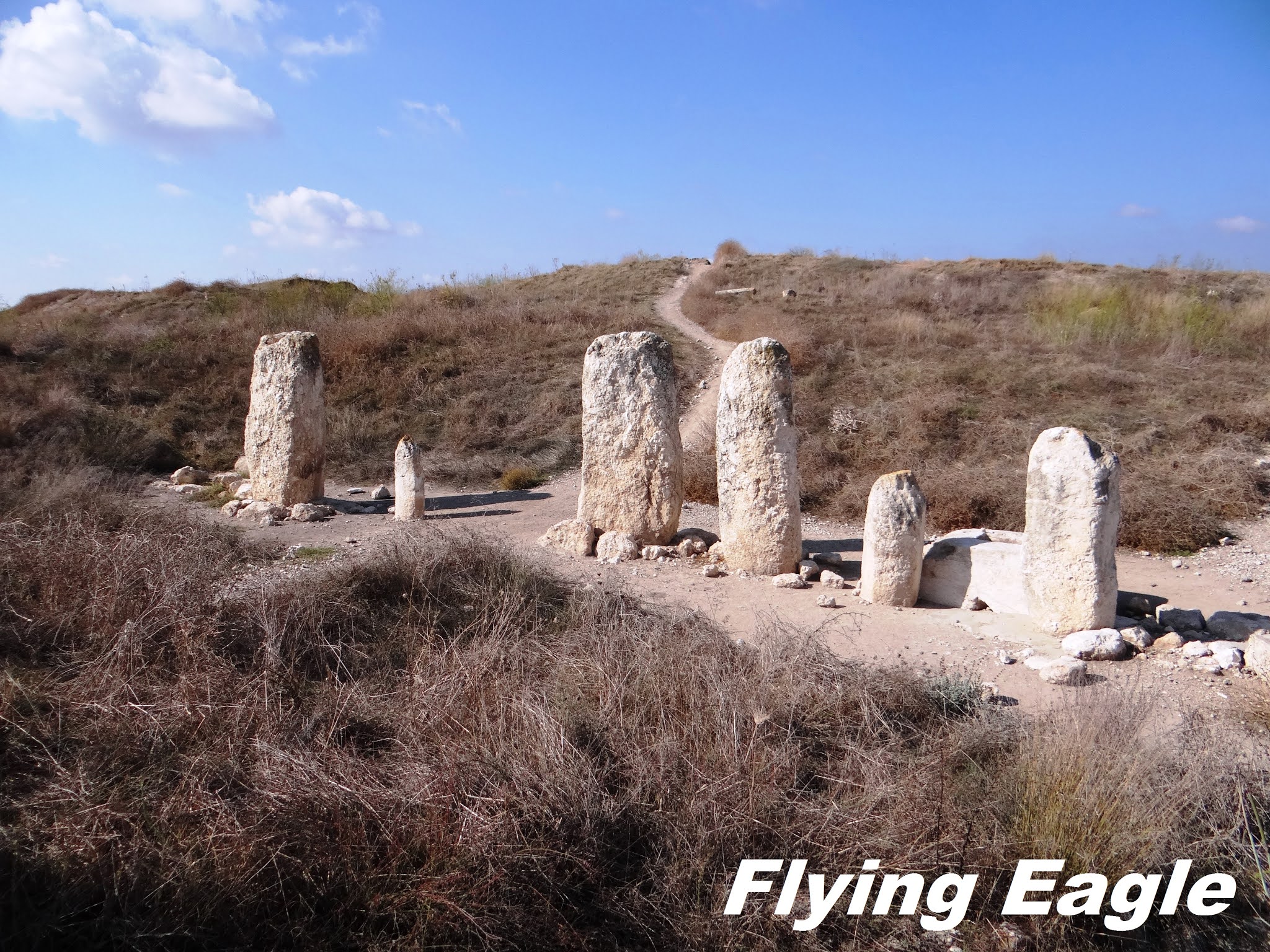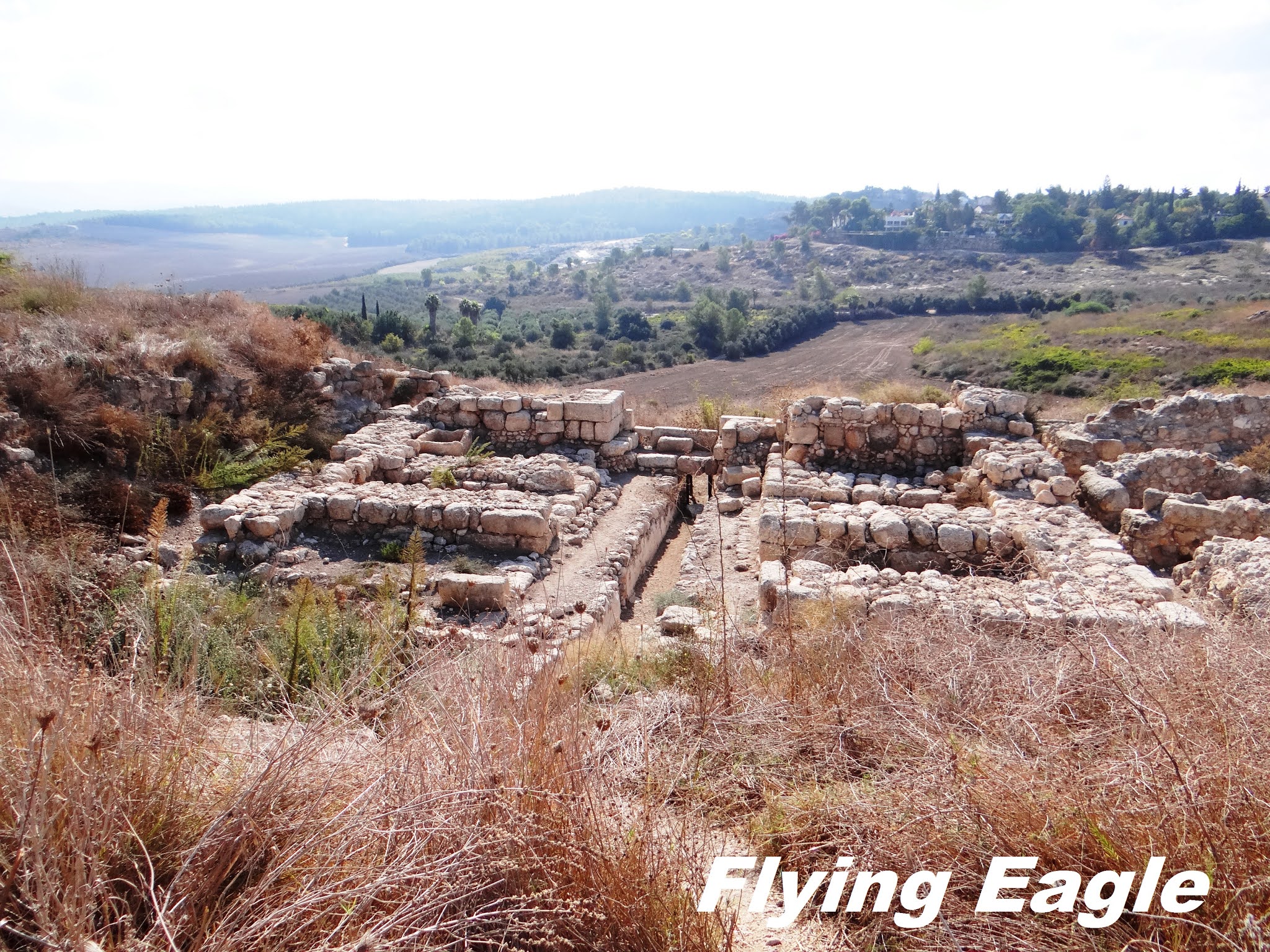 這天我們參觀的景點和以色列歷史上的三位人物有關:所羅門、參孫和撒母耳。所羅門的智慧名聞遐邇,最耳熟能詳的大概是他為兩位爭子的婦人斷案、找出生母的事件了。所羅門為王時,銳意發展三大重鎮(列王紀上9:15),其中包括基色。基色位於耶路撒冷西方約30公里,地勢險要,又有兩條大道通過,是軍事和商業的重要據點。我們一到基色便看到一個路標,上面寫著Tel Gezer。Tel在希伯來文意即山丘,尤指有遺跡的山丘,所以在參觀廢墟時,往往會見到這個字。路標上還有個山羊標誌,表示這是國家公園。根據考古資料,這一帶早在公元前四千年即有人居住。後來迦南人還在基色建了環繞全城的城牆,厚達三公尺。 進入公園不久就看到著名的基色月曆。月曆石版於20世紀初出土,上刻八行古文,列明全年每個月依序進行的農務。依據銘文的用辭和字體推斷,年代應在公元前十世紀,大約是大衛和所羅門的時期。基色展示的是複製品,原版存放於土耳其伊斯坦堡的古代東方博物館(Museum of the Ancient Orient)。繼續前行有更多遺跡,包括迦南時代的城門。城門的通道看來狹窄,但通道兩旁的城牆卻高達七公尺,十分驚人。所羅門時代的城門則更是宏偉,城門外圍連接著高塔,再連著向外延伸的城牆。城門通道兩側各有三個房間,地下還有貯存雨水的設計。在公元前十世紀便有這等巧思,令人佩服。 此地必看的還有十根石柱。考古學家相信,它們是中銅器時代(約在公元前17-21世紀)迦南人獻祭的邱壇。我們參觀了石柱之後,突然有一群人騎馬經過,成為荒煙蔓草中特別的點綴。 ▲基色的指路標有國家公園的標誌。