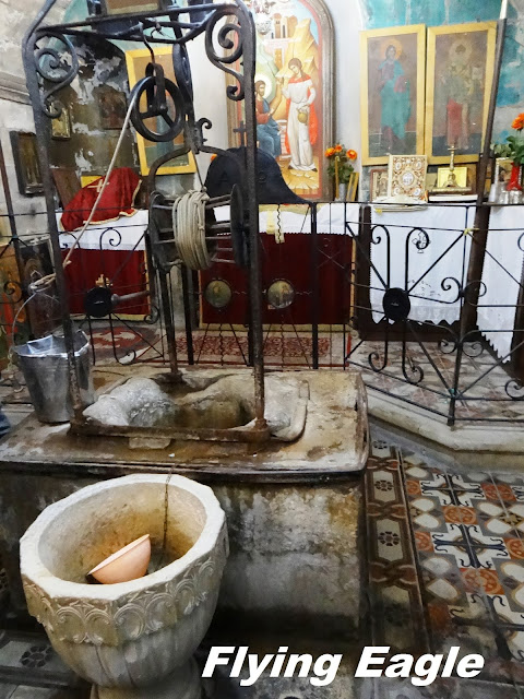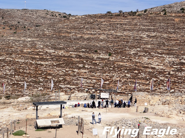 聖經記載了耶穌和撒瑪利亞婦人在雅各井旁著名的對話(約翰福音4:1-29)。雅各井位於現今的納布魯斯(Nablus) ,這個地點千百年來建立過不同的教堂,目前是一座希臘東正教的教堂(The Greek Orthodox St. Photini Church),雅各井則位於教堂的地下室。 教堂和其他東正教教堂一樣,有很多畫像和吊燈。我們穿過教堂一樓熙熙攘攘的人群,從角落的樓梯進入地下室。地下室除了著名的雅各井之外,還販售紀念品。管理員不准拍照,但團友紛紛購買紀念品,哄得他心情大好,勉強讓我們拍一張留念。根據多年前的測量,雅各井深達41公尺。我們打水品嘗,井水沁涼清甜。井邊打水的鐵桶配上塑膠水勺,實在很不相襯。一位重遊此地的姊妹考我們,以前的水勺如今何在,謎底被我猜中──掉到井裡撈不出來了! 雅各井所在的納布魯斯即為古時的示劍,示劍旁邊的兩座山──基利心山和以巴路山,隔著示劍谷遙遙相對。聖經記載,以色列百姓進入迦南地後,六個支派在基利心山上為百姓祝福,另六個支派則在以巴路山上宣布詛咒(申命記27:11-13),以提醒百姓謹守神的誡命。後來撒瑪利亞人在基利心山上建了他們的聖殿,此聖殿後來被毀,但撒瑪利亞人仍視基利心山為聖山(約翰福音4:20)。 示劍古城如今是座考古公園(Tell Balata Archaeological Park),屬巴勒斯坦管轄,所以名稱用的是阿拉伯文的廢墟Tell ,有別於上一篇基色遺跡見到的希伯來文 Tel。雖說是考古公園,但和先前的示羅考古公園相去甚遠,像是乏人管理。我們看到一塊石版,上刻約書亞的名言「至於我和我家,必定事奉耶和華。」(約書亞記24:15)。數千年前就在此地,約書亞當眾表明心志以勉勵百姓,風範令人動容。 我們離開時有巴勒斯坦的男童過來要錢,我先生沒給,他們竟然從後面拿石子丟他。不禁想起聖經關於他們的預言:「他為人必像野驢。他的手要攻打人,人的手也要攻打他。」(創世記16:12) ▲雅各井上的東正教教堂。
