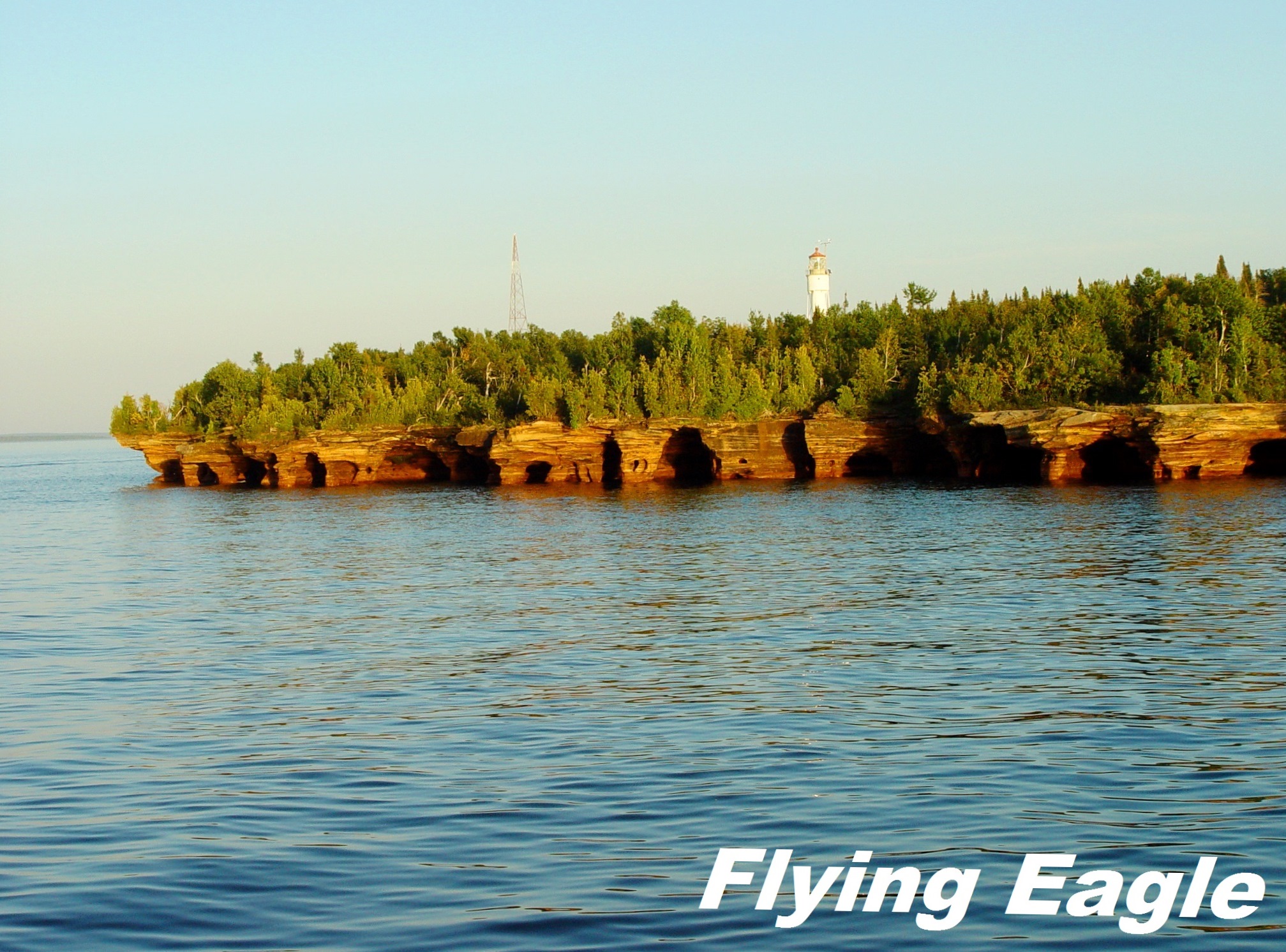 使徒群島國家湖岸共有八座燈塔,是美國國家公園系統中,擁有最多燈塔的風景區。除了兩座已經功成身退,其餘六座分布於六座島嶼上,它們全列名於國家史蹟名錄(National Register of Historic Places)。我們在遊湖時看到了惡魔島和樹莓島(Raspberry Island)的燈塔。使徒群島國家湖岸每年舉辦燈塔慶祝活動時,會有渡船走訪所有的燈塔。 ▲啟航前。