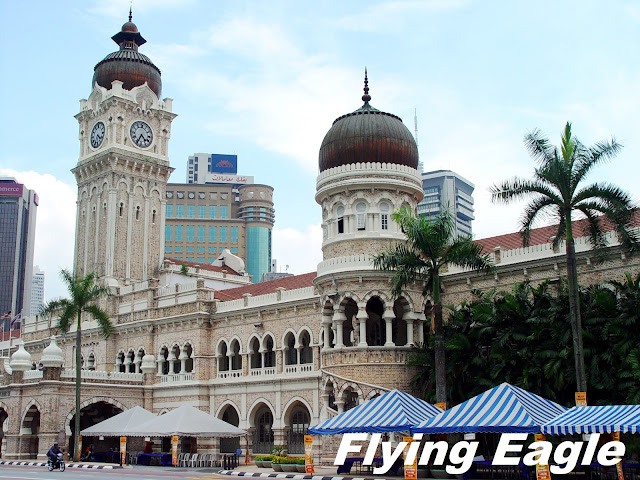 國家級建築 馬來西亞雖由選舉產生國家元首,但元首不叫總統,而是國王或最高元首,尊稱為陛下,最高元首的官邸便是吉隆坡國家皇宮。這座皇宮建於1928年,原本是華人富商的私宅,在二戰時被日本佔據,1957年成為最高元首的皇宮。皇宮金光閃閃的圓頂很吸睛,大門兩側均有騎馬和站立的衛兵看守。大門上有馬來西亞國徽,透過柵欄可以看到門裡花木扶疏。在2011年新皇宮啟用之後,舊皇宮便改為皇家博物館。 馬來西亞是回教國家,當然少不了清真寺。國家回教堂於1965年竣工,可容納15,000人。它沒有一般清真寺常見的圓頂,無論是建築主體或是噴水池都予人「尖」的感受。多褶的藍色傘形屋頂和象徵獨立精神的尖塔,都頗有特色。說到清真寺便想起我們在馬國的導遊,他很喜歡表現他的博學多聞,也很喜歡讓團友玩益智問答。記得其中一題是,「持馬國護照不能去哪個國家?」這題被我先生答對,答案是以色列。導遊說,馬國護照上有一行字寫明這項禁令。上網一查,果然馬國護照有以下這行字: “This passport is valid for all countries except Israel.” 蘇丹阿都沙末大廈是吉隆坡重要的地標,我們老遠便見到幾顆大洋葱雄踞屋頂。居中的鐘樓最高,兩側各有一座圓頂的塔樓。有趣的是塔樓的窗戶並非左右開,而是由下方推出去。這座融合了英式和印度回教風格的建築,是英國統治時期的行政中心,如今只有少數政府部門仍在此處。大廈前的獨立廣場頗有歷史意義,1957年馬來西亞獨立,便在這廣場舉行降英國國旗並升馬國國旗的儀式。所以此後每年8月31日,馬國都在此舉行國慶。 ▲當年的國家皇宮。