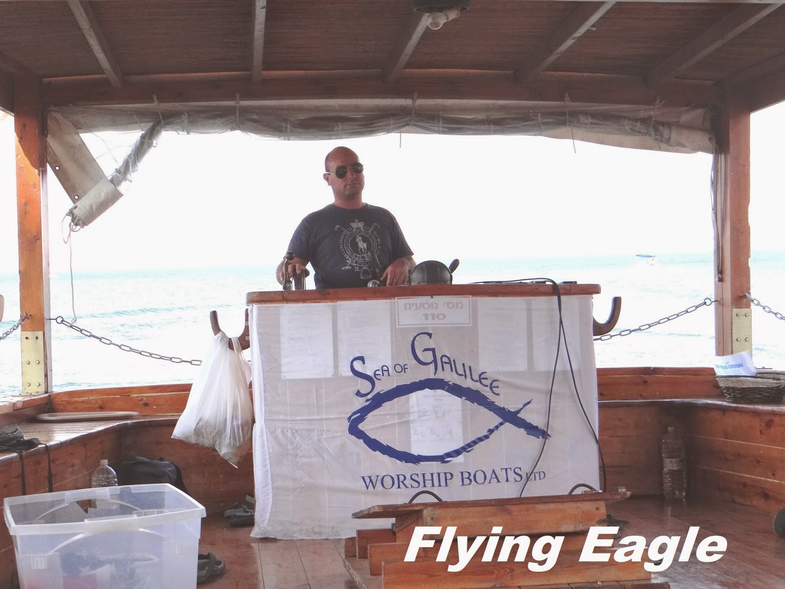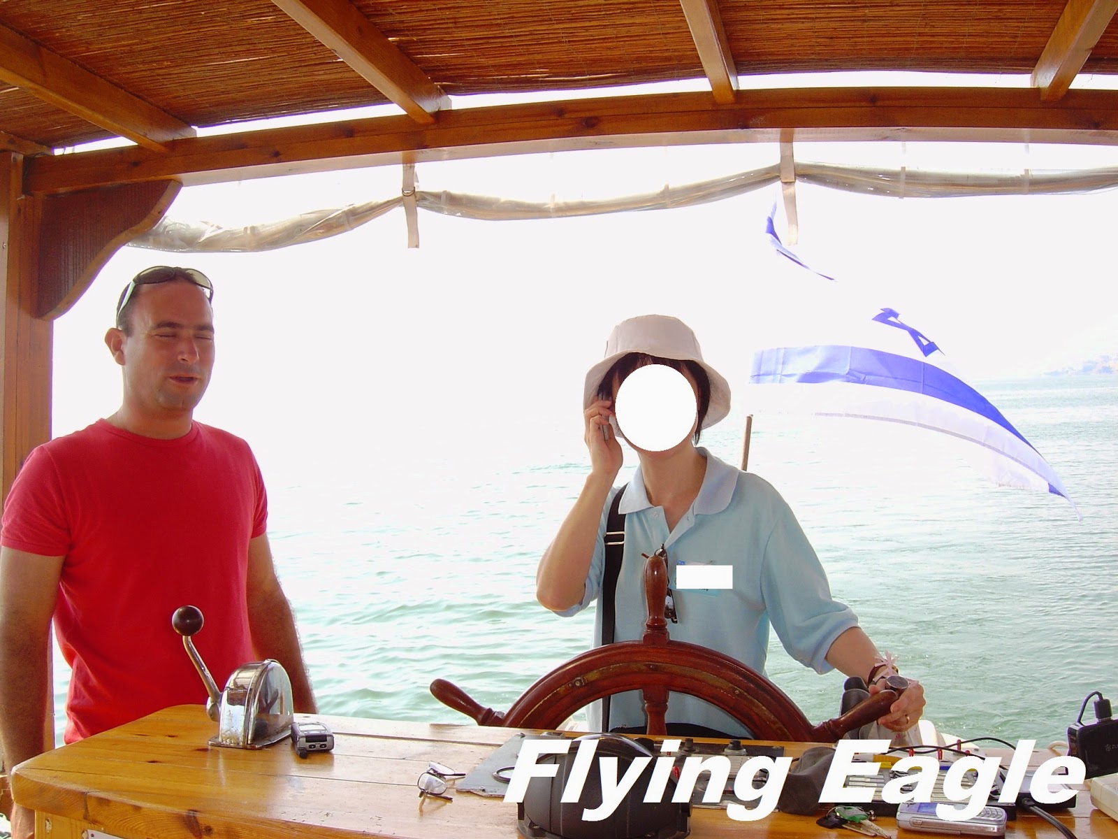 我們抵達岸邊時,船已慢慢駛近。等大家都上了船後,船長首先掛了我們的國旗,可想而知船長的箱子裡必然有許多國家的國旗。船長喜歡音樂,所以還錄製了詩歌CD供遊客購買。我們08年初訪時也是同一位船長,那時我還站在他的位置掌舵, 比劃比劃。 ▲我們的船抵達岸邊。 ▲08年來訪時我曾試著掌舵。 隨著船緩緩駛離,岸邊景物也逐漸變小。我們停在水中央,水面一樣平靜無波。當年彼得等人曾在這裡打漁,他們也曾經因看到主耶穌在海面行走而害怕,還因風浪大作而向主呼求。我們能夠在不同的時代,來到主耶穌和門徒生活、服事的地點,追想他們談話時的語氣和表情,實在是很特別的經歷! |