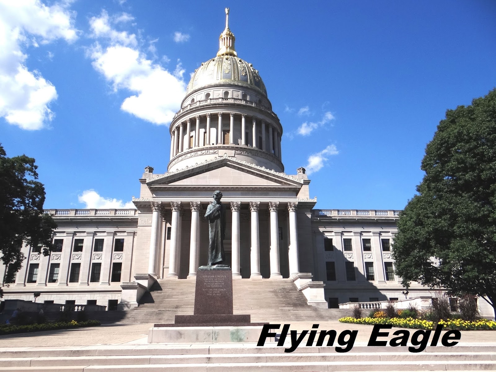 我對西維吉尼亞州的最初印象,來自美國已故鄉村歌手約翰‧丹佛(John Denver)膾炙人口的“Take me home, Country roads”(鄉間小路,帶我回家)。這首歌提到西維吉尼亞州猶如天堂,也提到該州的山嶺和河流。西維吉尼亞州並不大,境內多山,道路崎嶇,就連一般筆直的州際公路在此都是彎來彎去的不太好開。西維吉尼亞州原屬於維吉尼亞州,在美國南北戰爭時因贊成北方立場,而與支持南方的維吉尼亞州分裂,另立新州。州政府位於查爾斯頓,該市也是全州第一大城,但這第一大不過也就5萬多人口。 西維吉尼亞州並不是個富有的州,但州府建築卻十分豪華氣派,金色的圓頂在太陽下閃閃發光。我們到達州府時約下午4時半,只見州府員工紛紛從大樓中走出,這下班時間實在有點早,令人好奇到底他們幾點鐘上班。西維吉尼亞州府最特別的是臨河而建,在我們走訪過的美國州府中絕無僅有,並且正門面對著河而非市區。正門的廣場外屹立著林肯雕像,因為西維吉尼亞州成立新州時是林肯任總統,經由他的宣告和簽署,西維吉尼亞州才有了新的身分。