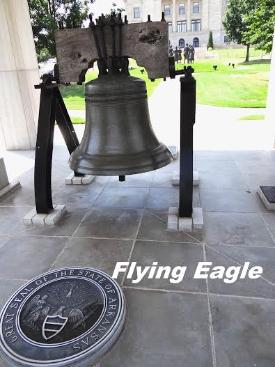 ▲近觀自由鐘和州徽。 ▲州府背面立著「小岩城9人」的雕像。