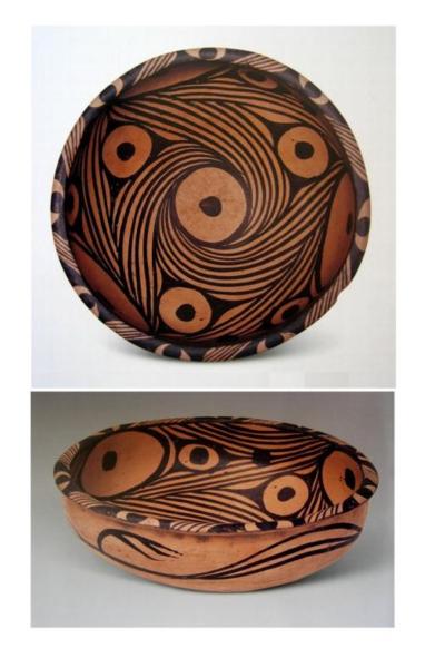 馬家窯陶器最特別的就是大地之母圖案,這在C-T陶器有看到但形狀不一樣。另外,C-T是用陶製人俑形式出現。
