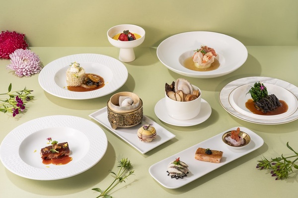 明娟樓:米其林入選餐廳的《春頌御饗宴》 由主廚吳錫卿親自操刀的米其林入選餐廳 明娟樓(Ming Juan Lou),推出**《春頌御饗宴》**套餐,將山海氣韻轉化為精緻粵饌。 開胃菜「春序開章 · 三味生花」集結了百花金豬牡丹鰻、牡丹蝦佐甜菜根醬以及山藥泥包裹的去骨鰻魚,展現豐富的味覺層次。核心湯品**「松茸元貝羊肚鮑」**則選用老母雞與金華火腿熬製八小時,匯聚松茸、羊肚菌與南非活鮑,湯頭澄厚悠長,展現時間淬鍊出的深度。