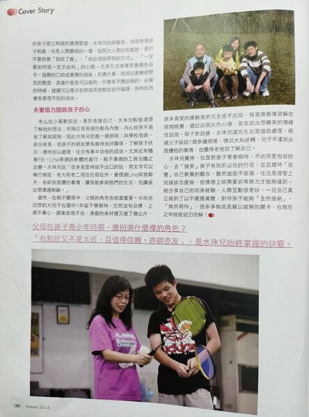 「所謂有點近又不是太近,是指我不囉唆、不會大小事干預,只在一旁留意觀察,必要時做適當處理。比方說孩子們如果不想設我為FB好友,我也不勉強,但偶爾會前往其頁面,掌握他們的交友或生活狀態。至於值得信賴、亦師亦友,是與孩子建立一定信任的朋友關係,關心他們的情緒反應及狀態,適時給予協助;當他們碰到難題時,就不會擔心受到父母責難而有所隱瞞,敢主動告知父母,並且請求協助。」