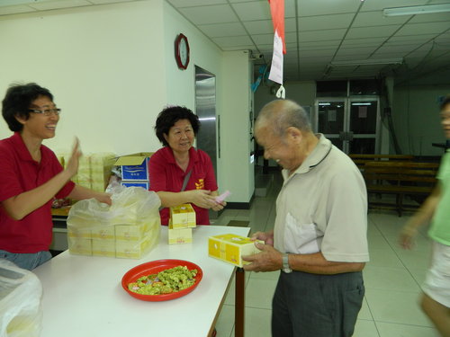 行動不便的長者還親自雙手送上 發放敬老餐盒的志工們都是誠心雙手送上對長者的尊敬與祝福