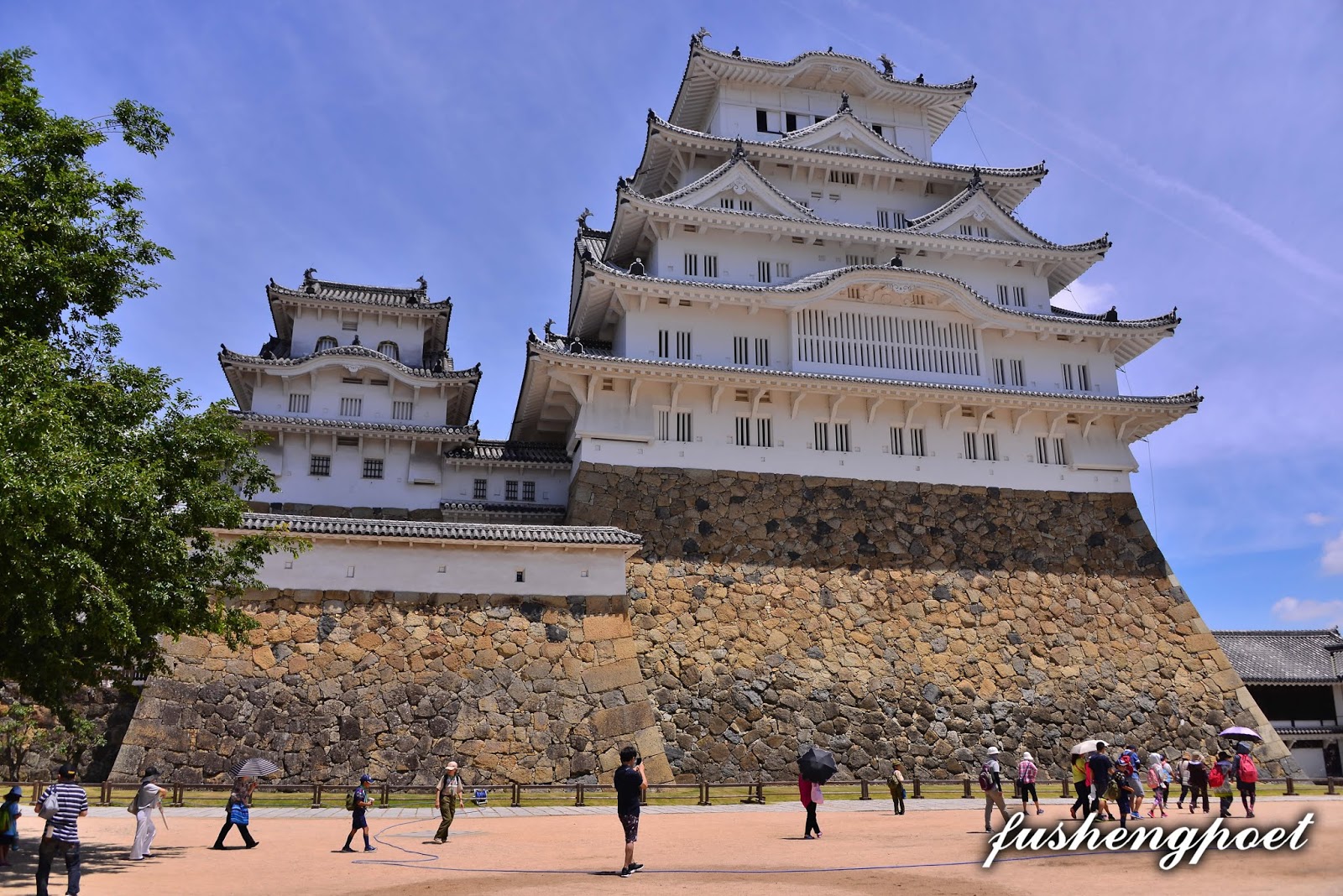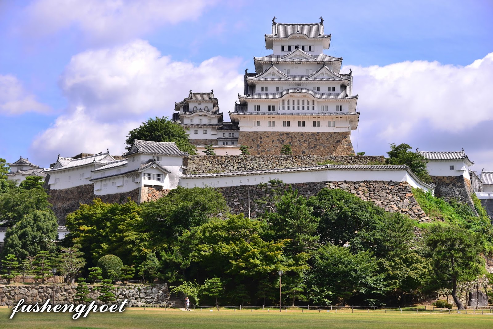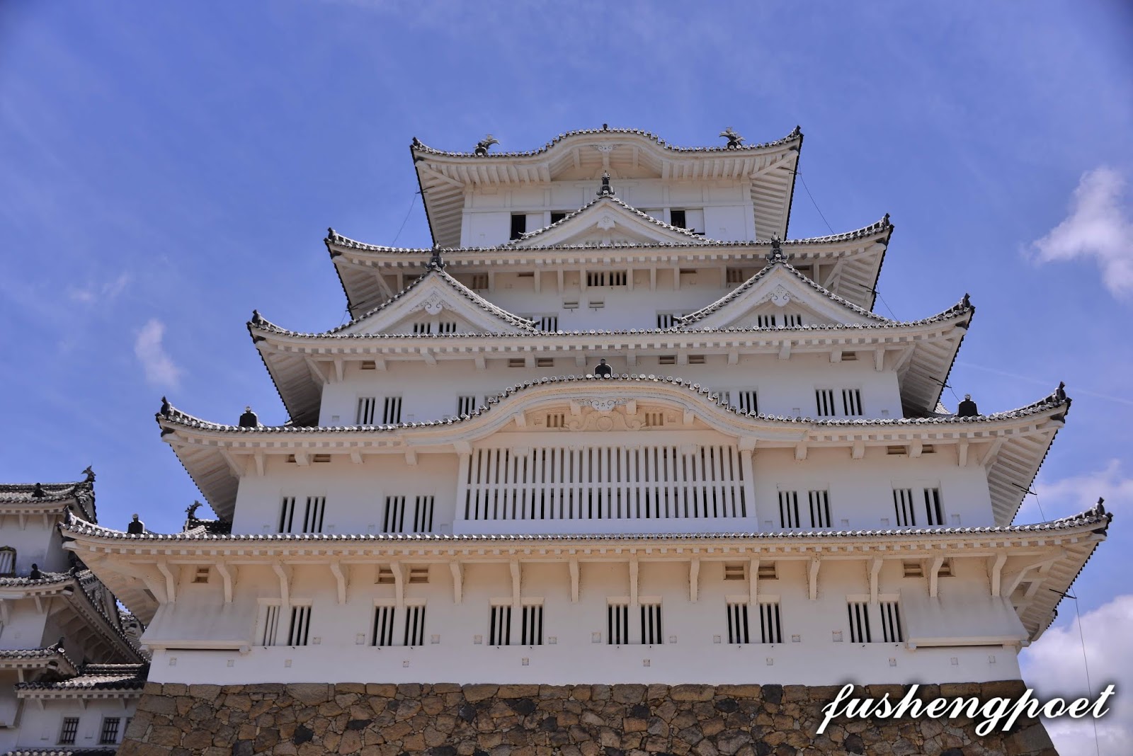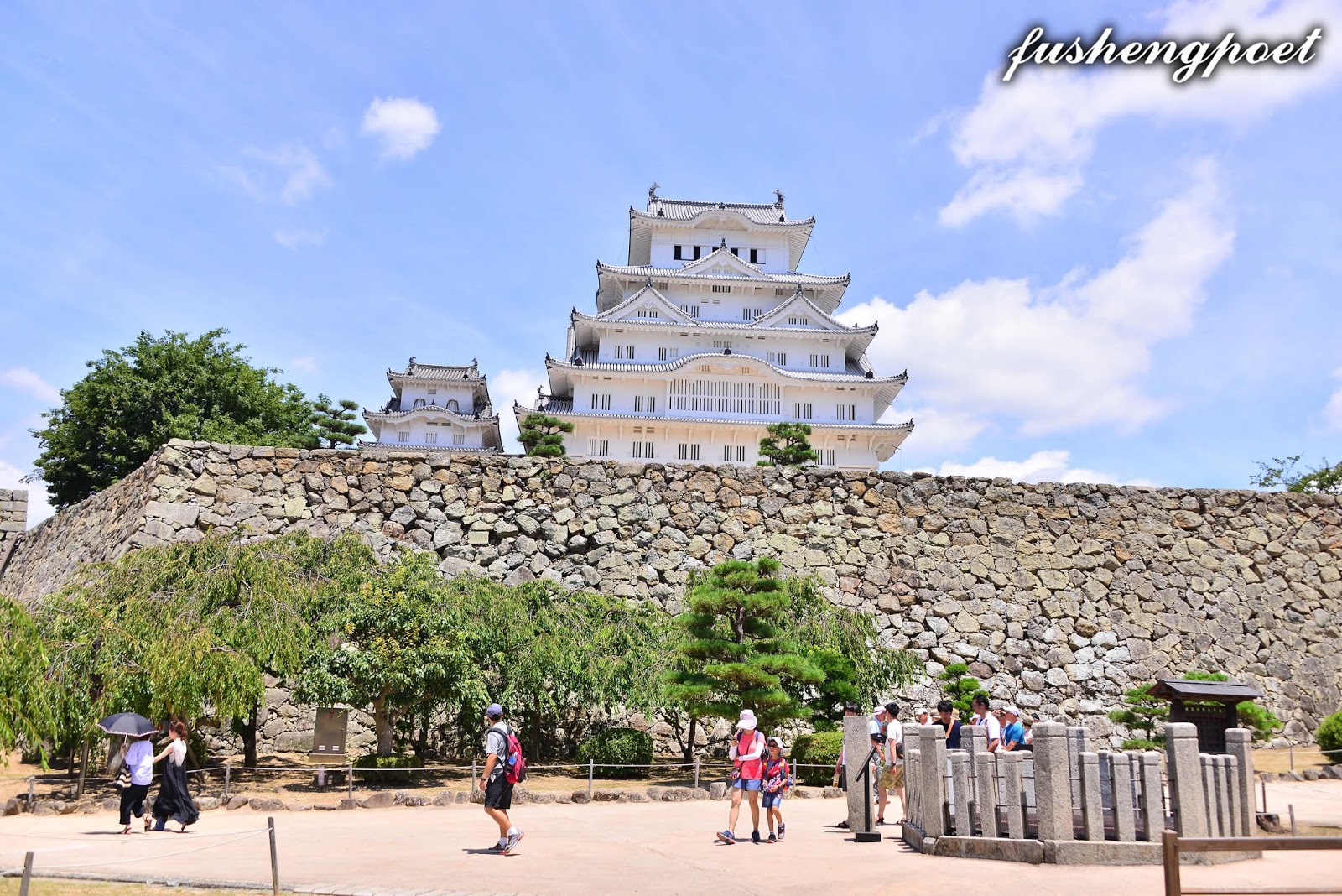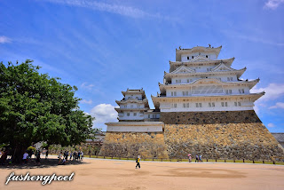 | 兵庫縣姬路城 姬路城最早建於1346年,屬於古代播磨國,地處兵庫縣姬路市的市中心,是日本保存最完整的一座城池,是在日本第一個登記聯合國文化遺產的古城,與熊本城、松本城合稱為日本三大名城。日本的城池由所處的地形而被分為山城、平城、平山城三類,山城建於山上,平城建於平地,平山城建於平地與山交接處依山而立,姬路城屬於平山城。 西元1580年,豐臣秀吉奉織田信長之命討伐中國(指本州西部),進入播磨區並入主姬路城,隔年(1581)就在姬路城建造三重天守閣。關原之戰(1600年)後隔年,姬路城主池田輝政將天守閣改建為五重7層,並於1609年竣工。姬路城塗了白漆的城樓看起來宛如飛騰欲起的白鷺,所以又被稱為“白鷺城”,於當地遠遠望之,的確優雅如兀立之白鷺。而姬路在日語中指蠶繭,是因為姬路城所處的姬山和鷺山兩座山崗酷似蠶繭,故得此名。 雖然姬路城在古蹟維護上非常完善,但是這是重金修護的代價換來的,自西元1910~1911年「明治大修理」耗費9萬圓以修理天守閣,再歷經兩次「昭和大修理」(1934~1944/1950~1955[中途因二戰而中斷],1956~1964),平成年間又從2009年10月開始整建直至2015年3月完工,在整修期間遊客並無法進入大天守內參觀。