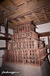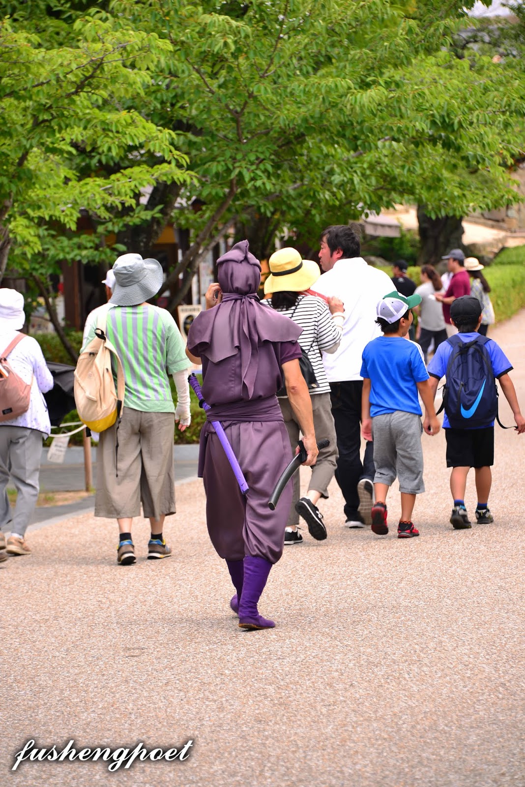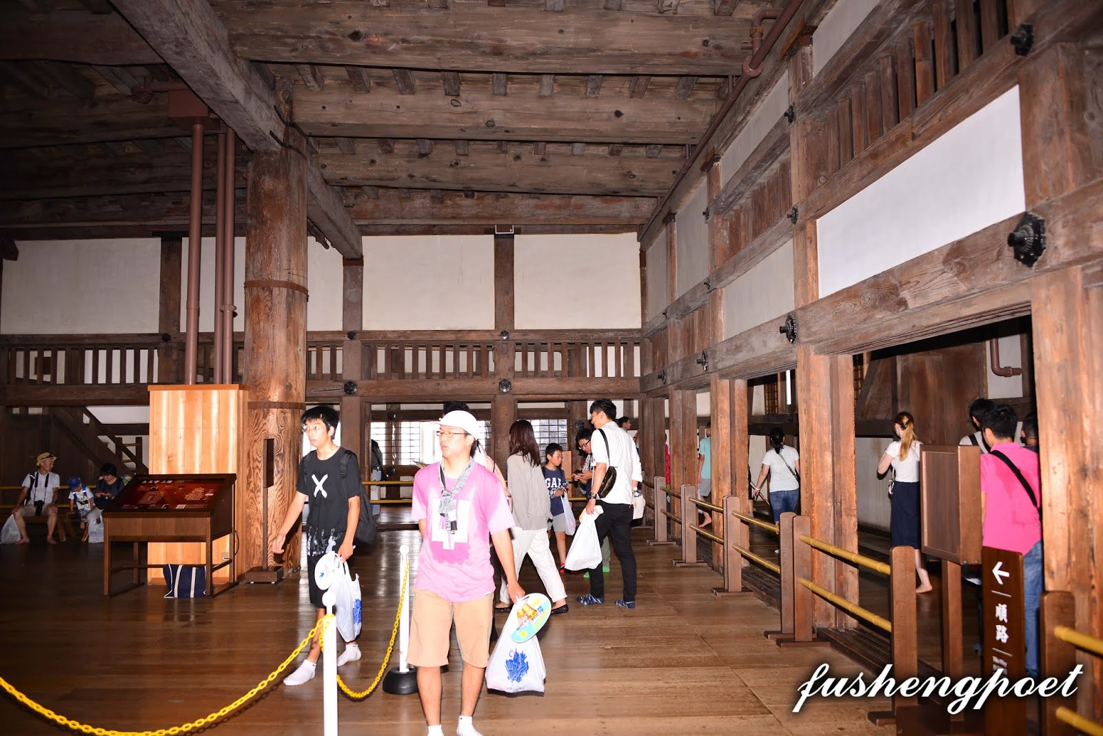 2. 桐花: 桐花指五七桐家紋徽章。 3. 以下兩句(3,4)都是中國的歷史人物。阿瞞: 曹操,小字阿瞞。西元191年在袞州(袞音滾)平定黑山賊,又於百萬黃巾大軍入侵兗州時降伏收編之,自此聲威大震。 4. 趙匡胤還未被擁立為大宋皇帝前曾在西元956年於淮河大勝南唐,而詩中未指出的的是,趙匡胤在此之前兩年(954年),已於高平之役大破北漢。 5. 甸服:《周禮.夏官.職方氏》「方千里曰王畿,其外五百里曰侯服,又其外五百里曰甸服。」本句指隨心所欲而能裂土封疆。 6. 勳藩: 有功勳的藩主、大名。本句指勳藩對自己而言猶如骨鯁在喉。 7. 山陰道: 山陰道是日本本州西部北方沿海地區。西元1577年,織田信長命家臣豐臣秀吉奪取中國(指日本本州西部地區),西元1580年,豐臣秀吉連克但馬國、播磨國。1581年, 織田軍與毛利軍在山陰道的鳥取決戰,豐臣秀吉用斷糧戰術攻下了鳥取城(鳥取城之戰),毛利一族的吉川經家戰敗自殺。 8. 因州: 鳥取縣鳥取市古稱的因州、因藩國。因幡國屬山陰道,又稱因州。路作叉:指前途紛紜,叉路時見。 這首詩我臆測是描寫豐臣秀吉,畢竟天守閣是他任姬路城主時興建的,五七桐也是豐臣秀吉的家紋徽章,而德川家康這位勳藩中的勳藩對豐臣秀吉而言猶如骨鯁在喉,故有「扼喉牙」之比喻。在豐臣秀吉死後(1598年),德川家康在關原之戰(1600年)把親豐臣秀吉的舊家臣勢力一網打盡,1615年再將豐臣家族滅族。最後兩句指豐臣秀吉作為織田信長家臣時春風得意的戰事是在本州西部山陰道的但馬國、因幡國(即因州、鳥取)等一系列戰事,但是在攻陷因州之後一年(1582年)發生本能寺之變,織田信長被殺,自己輾轉取而代之成為最具實權的人,也是從執行長官命令的人變為發佈命令的人,相當於直路變為叉路,要在每一個叉路擬定自己的決策命令並交由下屬執行(當然,你若說「叉路」是指他行險走歪路去侵略朝鮮以至於大大削弱自身實力及陽壽也說得通)。不料歷史重演,自己亡故後,德川家康輾轉取代自己又成為最具實權的人。 以下節錄自維基百科: 「賴山陽(1781年1月21日-1832年10月16日),幼名久太郎,名襄,字子成,號山陽,別號三十六峯外史,生於日本大阪,江戸時代後期歷史家、思想家、漢詩人、文人、藝術家、陽明學者。著有《日本外史》、《日本政記》,對幕末尊王攘夷志士有很大影嚮。其父賴春水(1746年-1816年),出身安藝竹原(今竹原市)。至大阪遊學,師從尾藤二洲及古賀精里,學習朱子學。在大坂江戸堀北(今大阪市西區江戸堀)開設私塾青山社。三子賴三樹三郎在安政大獄中被處死。」 以下則是對賴山陽的更進一步介紹: http://www.newtenka.cn/sanpu/HTML_files/zwx/lai.htm