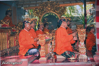 我們是在烏布皇宮(Puri Saren Agung)前欣賞夜間的雷貢舞表演,legong一詞由lega(快樂)和wong(人)兩個詞組成,將它們組合在一起,可以理解為“使人快樂的舞蹈”。 這個詞也可以分為oleg(舞蹈)和gong(加美蘭[gamelan],伴舞的傳統音樂),所以雷貢舞也是舞者在加美蘭音樂下的輕柔舞蹈。在19世紀後期雷貢舞在巴厘島宮廷裡逐漸盛行,通常會挑選未進入青春期的女子作為主要舞蹈者,他們從五歲左右開始進行嚴格的訓練,四肢、指節、眼神等等都有嚴格的要求。這些舞者在社會上享有高聲譽,常成為皇室貴族或富商的妻子,不過結婚後,他們不再跳舞。烏布王室早在20世紀初就被荷蘭人廢黜,「舊時王謝堂前燕,飛入尋常百姓家」,原來皇室獨賞的雷貢舞走入普羅大眾,未成年的舞者限制不復存在,不過這對舞蹈者經驗的累積而言,未嘗不是好事。 雷貢舞故事是東爪哇馬拉特(Malat)國王拉塞姆(Lasem)求愛別國的蘭格薩里(Rangkesari)公主被拒,怒戰該國國王,並囚禁逃入森林的蘭格薩里公主,公主的國王兄長聞訊前來營救,然後拉塞姆向其兄長發動總攻擊並遭遇烏鴉的襲擊而殞命。如果我的硬碟沒壞,也許可以湊出大概的故事內容,沖洗出的相片只是其中一小部分(而我又只能翻拍洗出的相片),所以要鑑別下面幾張相片的人物是故事中的那一位仍有困難。