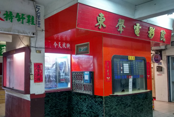 以前東聲戲院的售票處是在一樓的地方。據老闆回憶過去的描述,以前看電影的人多到不行,買票是用搶的,錢直接丟進售票口。售票小姐都來不及撿錢。可想像以前這裡看電影的盛況。不過後來因為電視的普及,造成戲院的收入銳減。最後戲院只剩下徐老闆與湯老闆娘倆人在處理戲院一切的事務了。