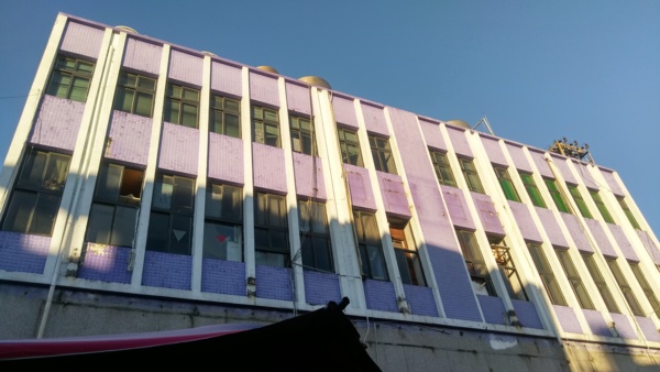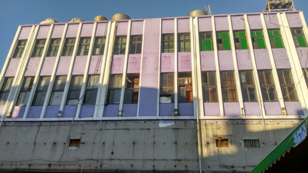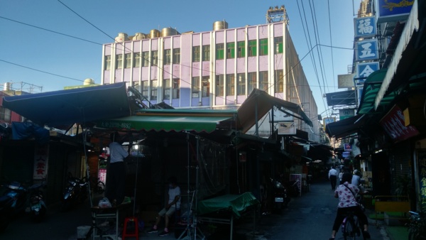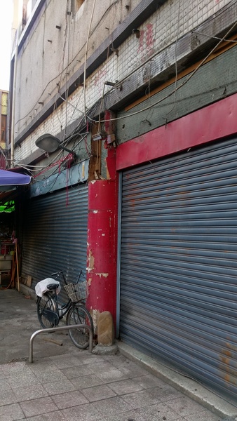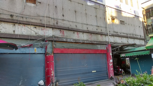 望著牆上斑駁的紅字,這裡以前好像是零售市場?不知道這個建築是民營的還是公營的??
