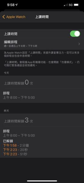 因為製圖爸的堅持,小六彬的手錶沒有外加任何設限,製圖爸說要讓這個孩子學習處理裝置與自我管理。所以國文媽只能從自己的iPhone記錄孩子每天動到apple watch任一功能的次數,但是無法做出任何及時阻止的介入。這幾天下來,令人吃驚的反倒是小六彬的意志力!