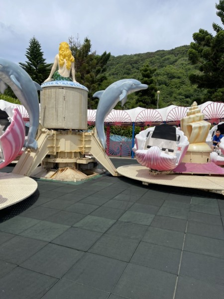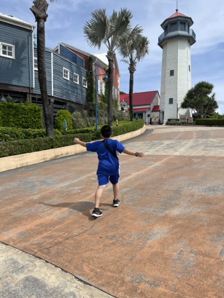 九點半進入海洋公園,國文媽忘記預約開園上山的纜車,心想,走上去也不會太累吧?結果,才走到半山腰就滿頭大汗,爬到目的地時國文媽已經喘不過氣了……。第七區只有四樣設施啟動,一小時之內整個區域只有他一個人瘋狂輪流,玩到工作人員都乾脆讓他單樣連坐三輪才替換!(原來可以有這種操作啊?人少真好…) 第七區已經玩瘋,接著就是第五區兩樣設施(海盜船、摩天輪),扣掉彬彬不想坐的摩天輪,整整半個小時他幾乎沒下過船!(唉,少爺,你把它當搖籃嗎?) 國文媽窩在陰暗處躲太陽,看著蔚藍的太平洋,想著……”乾脆去賞鯨好了!”(出門從不照計畫走的瘋狂),立刻上網查詢花蓮賞鯨團並打電話預約明天的船班。