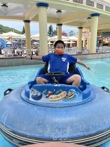 接著媽媽突然問我:「要不要去賞鯨?」我原本不願意,但後來想到,下次不知道何時才能有機會去海上賞鯨豚,所以就答應了。計畫有變,必須提早離開,所以我們只好加快玩的速度,我們照著計劃玩了水上碰碰車,在水中撞來撞去的感覺真新奇!