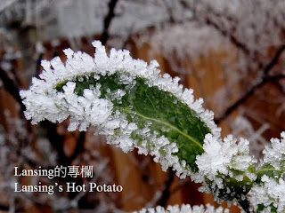 綠葉老冷著張臉 溫柔如水的晨霧遇上了 也得結凍成冰 一顆冰珠是一次心寒的邂逅 這成群成串 在陽光下閃爍的冰晶 封印了多少熱情轉冷的心