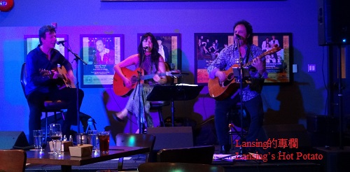 上場的是三把民謠吉他。 三個歌手,兩男一女, 在刻意營造的燈光下,看起來都年輕。 沒有電吉他沒有鼓,怎麼唱Eagles? 第一個印象如是說。