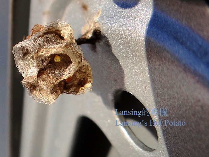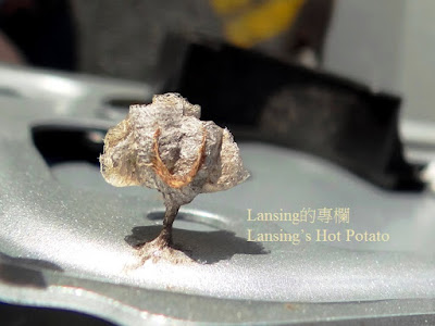 註一: 汽車油箱蓋裏發現一只小蜜蜂窩 蓮蓬式的小屋分隔出幾個典型六角菱形小房間 到底是哪隻天才小蜜蜂發現這油箱蓋裡的小天地 又為什麼認為這是他築屋的夢想之地 此刻已不可考 唯我一腔愧疚 縈繞不去