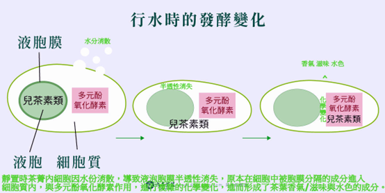 註: 茶葉的天然酶-內源酶是造就茶獨特風味與多樣性的重要「催化劑」,它們的活性受到嚴格控制,才造就了我們品嚐到的千姿百態的茶。 茶葉本身含有的酵素 茶葉中的天然酶,在製茶過程中,茶葉內的酵素(如多酚氧化酶)參與兒茶素的氧化聚合反應,形成茶的色香味(如綠茶變烏龍茶、紅茶),高溫殺菁會讓這些酶失活。 發酵茶的酶,有些茶(如紅茶、普洱茶)經過發酵(氧化)過程,酵素活躍,產生獨特風味。 茶葉應該屬於內源酶,而非外源(微生物酶) 多元酚類物質; 茶類中的多元酚以Flavanols- 黃烷醇 ,它有助於血管和心智健康含量最多,總稱為茶單寧(Tea Tannin),然而茶單寧的主要成分為兒茶素(Catechins)。多元酚類是茶葉中的主要成分,為構成茶湯之滋味與水色等的基本物質。其茶葉中的香氣,與胺基酸的轉化作用有關係。 多元酚為帶有芳香基之衍生物,為植物體重要二級代謝產物, 至今有數千種被確認,亦是植物防禦系統的一部份。多元酚對於食用或非食用植物性衍生物的品質重要; 多元酚與抗養化、抗癌、心血管保護功能相關。多元酚色澤、風味之感官表現,進而影響消費者之喜好。多酚-Polyphenols抗氧化營養素來源;綠茶、葡萄籽、葡萄酒等。 胺基酸 胺基酸(Amino Acid) 是一類含有胺基(-NH₂) 和羧(ㄙㄨㄛ)基(-COOH) 的有機化合物,是構成蛋白質的基本單位,對所有生物體重要關鍵,參與構成肌肉、器官,製造酵素、荷爾蒙和抗體,並維持正常生理功能。 它們可分為必需胺基酸(需從飲食攝取)和非必需胺基酸(身體可合成),人體約需20種不同的胺基酸來組成各種蛋白質。 茶樹亞種;因人為進一步的育種,以及茶樹在自然界中的變種,造就了臺灣非常多元化的茶葉品種。茶業改良場依據各地引進之品種,以及自1960年代開始選育育成之品種,目前為止共計125種。 註:亞種 育種 亞種 (Subspecies) 是指同一物種生活在不同地理區域的物種群,因受所在環境的選擇壓力(進化壓),在基因和特徵形態上發生變化而形成同物種間的差異。 茶葉依據不同的品種特性分別栽種於不同海拔的茶葉產區,經由不同茶區的氣候變化以及不同的製茶技術,可生產出多元變化且各具獨特風味的各式臺灣特色茶。 茶葉品種主要包括地方品種-青心烏龍、鐵觀音、四季春等、引進外來品種-阿薩姆等,以及育成品種-臺茶1~24號。而目前臺灣茶葉品種栽種面積依序為,青心烏龍、臺茶12號-金萱、四季春-商用飲品、手搖飲與青心大冇(ㄇㄡˇ )等。