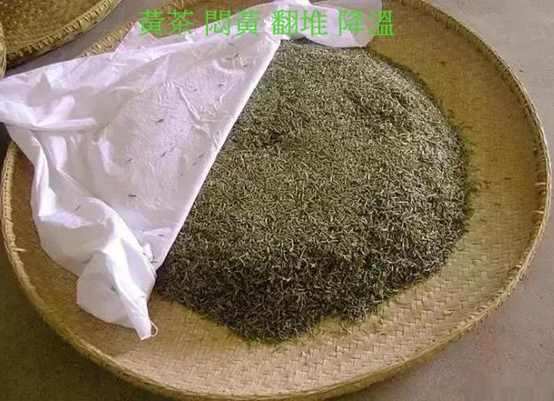 悶黃是在較溫和的濕熱條件下進行(與黑茶渥堆強調通風不同),讓茶葉緩慢變化,產量較低,技術要求高。根據悶黃位置不同,有乾坯悶黃(時間長、香氣佳)和濕坯悶黃,主要有黃芽、黃小葉、黃大葉等分類。