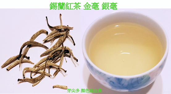 斯里蘭卡紅茶摘芽尖(Flowery),製成銀毫 (Silver Tips) 以及金毫 (Golden Tips),金毫是較為細幼的新芽,購買時如果芽尖的比例越高,整體茶葉看起來的顏色會越淡,價格也越貴。