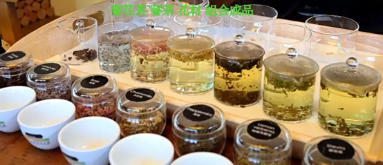 拌花茶 拌花茶的作法簡單,以製作好的茶葉(有時會搭配有窨製過的茶葉)加上乾燥後的花瓣,在沖泡時可同時聞到花香,欣賞花乾、茶葉一同舒展的飄逸,喝茶時,同時感受療癒的氛圍。少掉了挑花乾、重複窨製等工序,所以產量大些。有些花乾還帶有些許促進健康的元素,可依照自己的身體狀況來挑選喜歡的花茶。