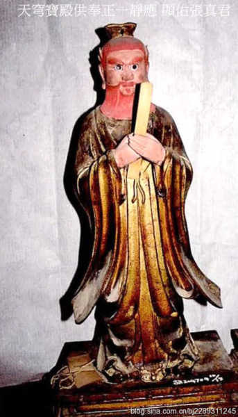 道教認為神界以三清為最高神,三清即原始天尊、靈寶天尊和道德天尊(太上老君).玉帝銅像的左右兩側供有真君天將銅像 14 尊,根據神像底座上的銘文,可知玉帝金像之左列7位天尊銅造像,稱:神功妙濟許真君、正一靜應張真君、正一靈官馬元帥、地衹太保溫元帥、北極天蓬蒼天上帝、北極翊聖陸天上帝、赤心忠良王天君(王靈官);右亦列7位天尊銅造像,是:太極仙翁葛真君、一元無上薩真君、金輪如意趙元帥、神霄蕩勇嶽元帥、 北極天猷丹天上帝、北極佑聖玄天上帝、太歲殷元帥.仙樓龕供奉的特點是:前排為四大天師,中間為護法四帥,後排為北極四聖和兩位天將. 張真君、許真君、葛真君、薩真君為四大天師. 張真君,頭戴天丁冠,紅鬚怒眼,執權杖,身著道袍,為東漢道士張道陵,於漢順帝時創立“正一盟威之道”,尊老子為道祖.入道者須供奉出五斗米,故又稱為“五斗米道”.唐僖宗時封為 “三天扶教輔天大法師”,宋理宗加封為 “三天扶教輔天大法師、正一靜應顯佑真君”.
