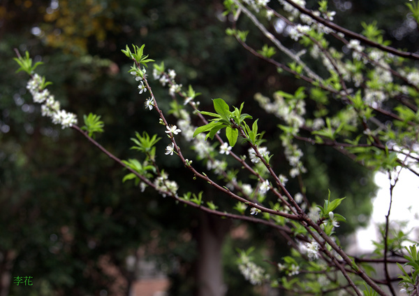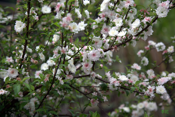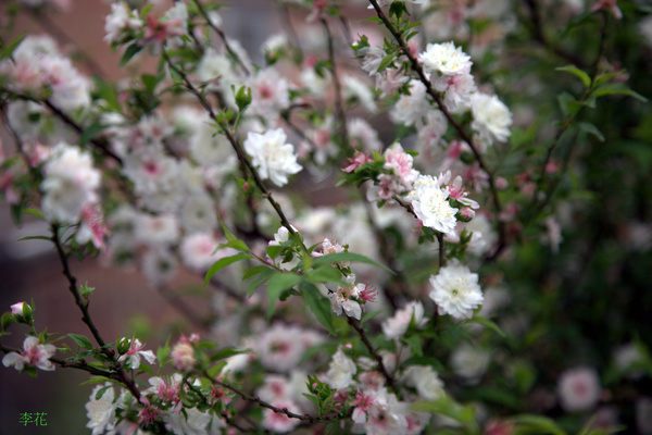 李花-李屬(學名:Prunus),又名櫻桃屬、桃屬、梅屬、櫻屬、杏屬,也是薔薇科的一個屬.植株為喬木或灌木.花通常呈白或粉紅色,包含五瓣花瓣和五個萼片.花為單生花、繖形花序或總狀花序.果實為核果,內有一個由石細胞組成的硬核.葉為單葉,通常為披針形,葉緣有鋸齒.